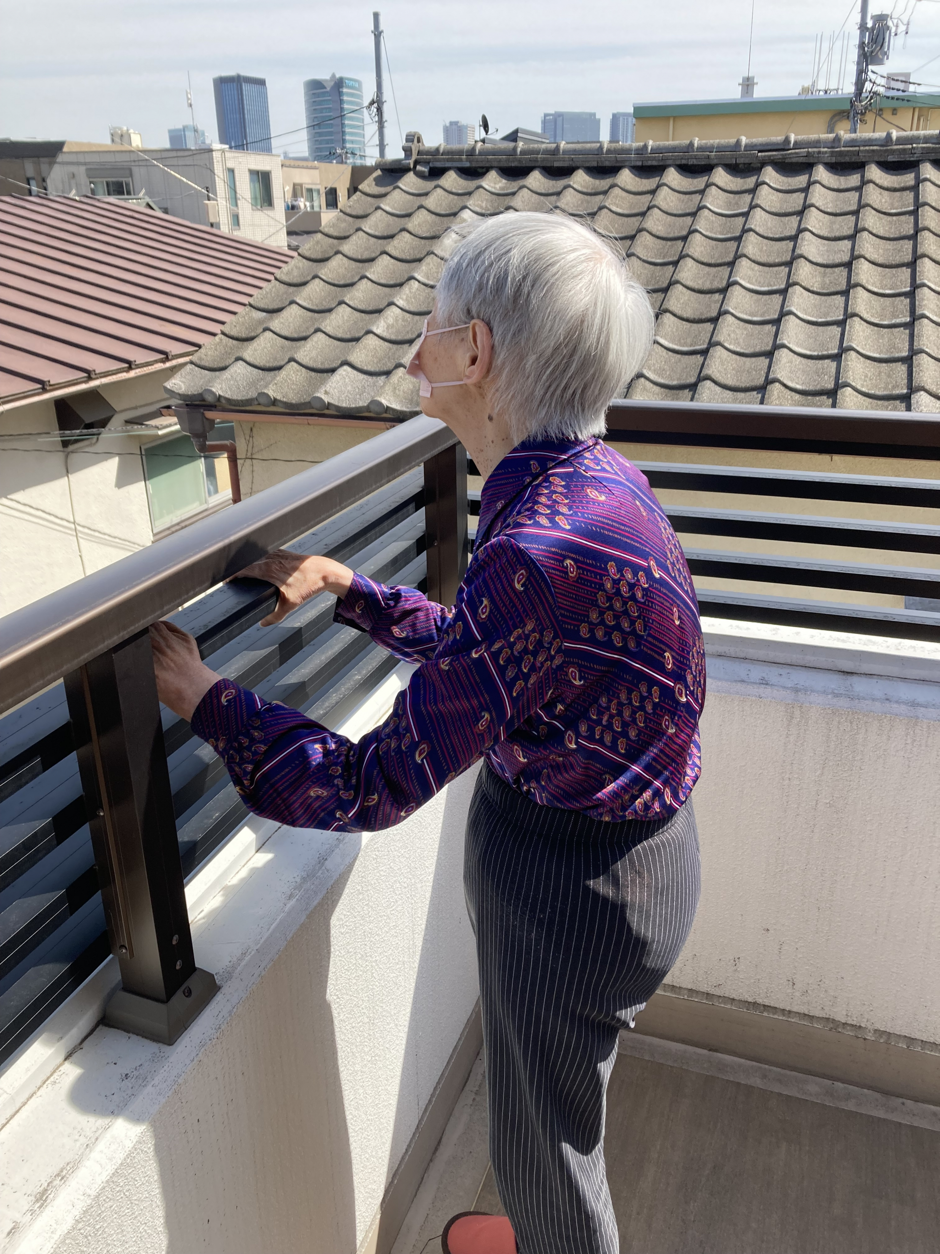 皆さんこんにちは 小規模多機能文京小日向です。今日はとても天気が良く暖かいので3階テラスの散歩に誘いました。残念ながら富士山は見えませんでしたが、拓殖大学や凸版印刷、文京シビックセンターがくっきり見えました。