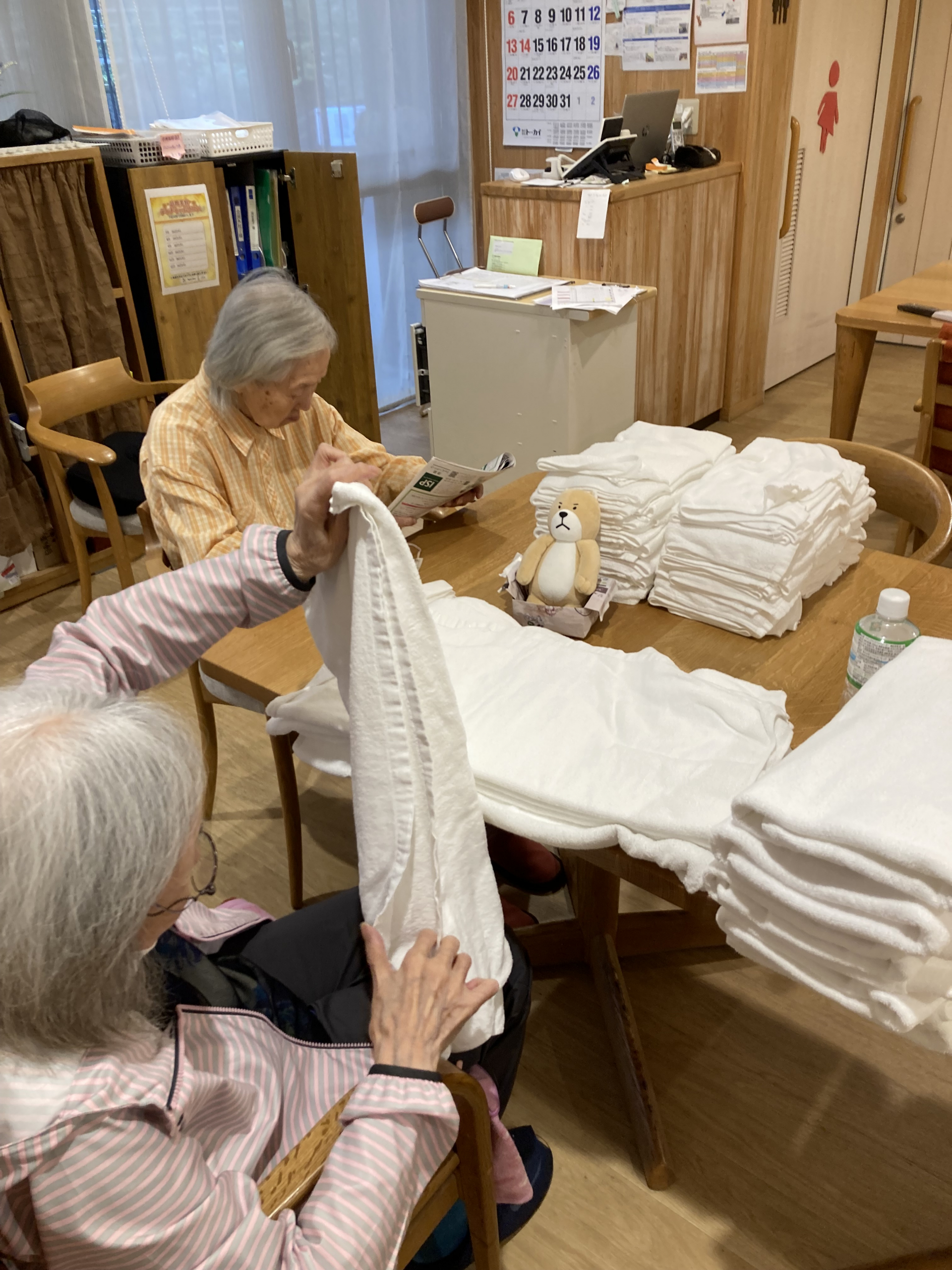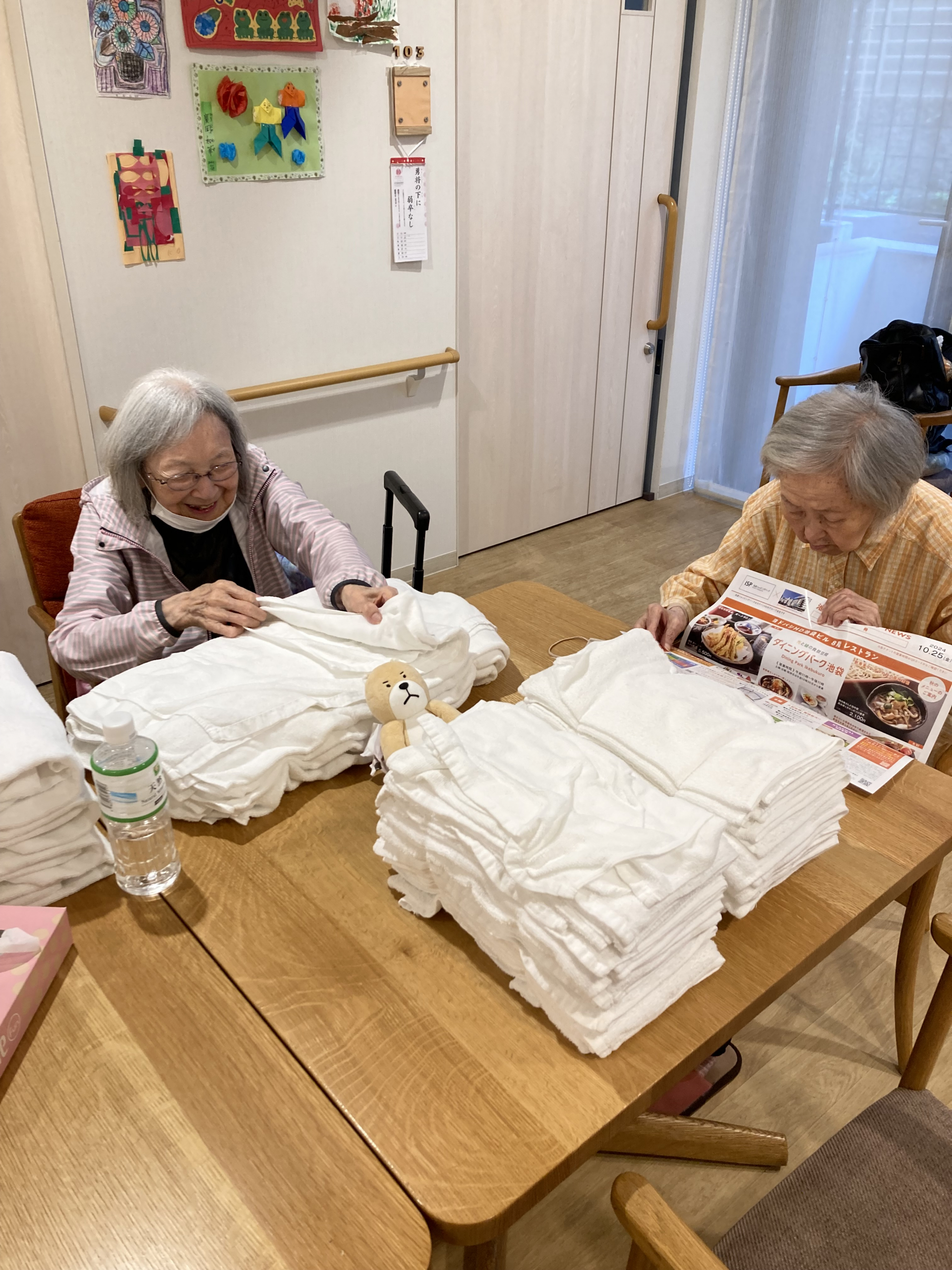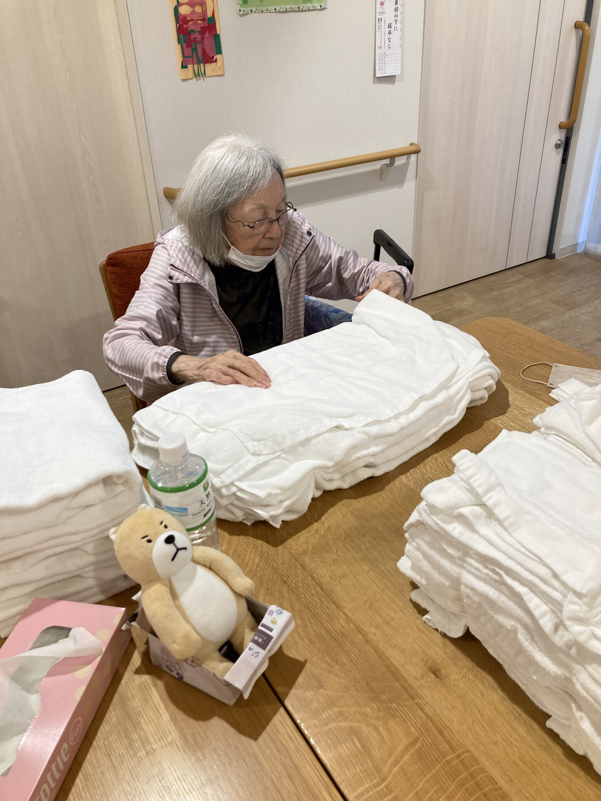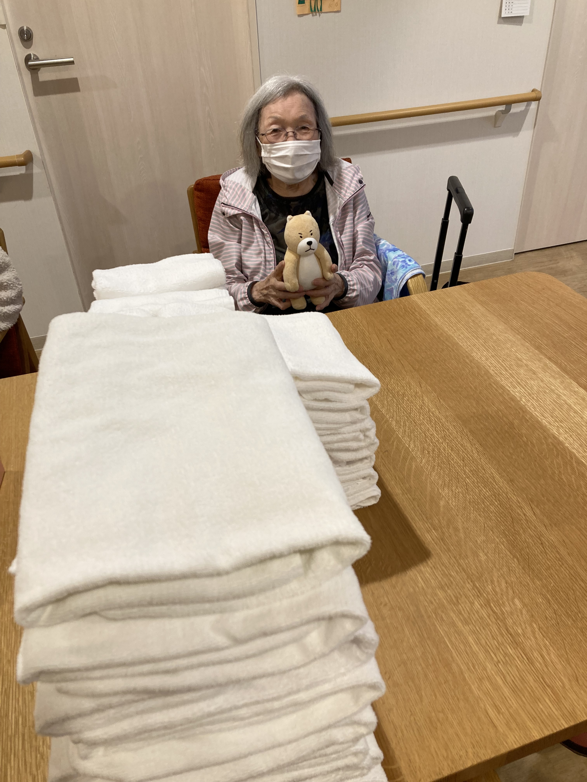 朝食後にタオル折りをしていただきました。