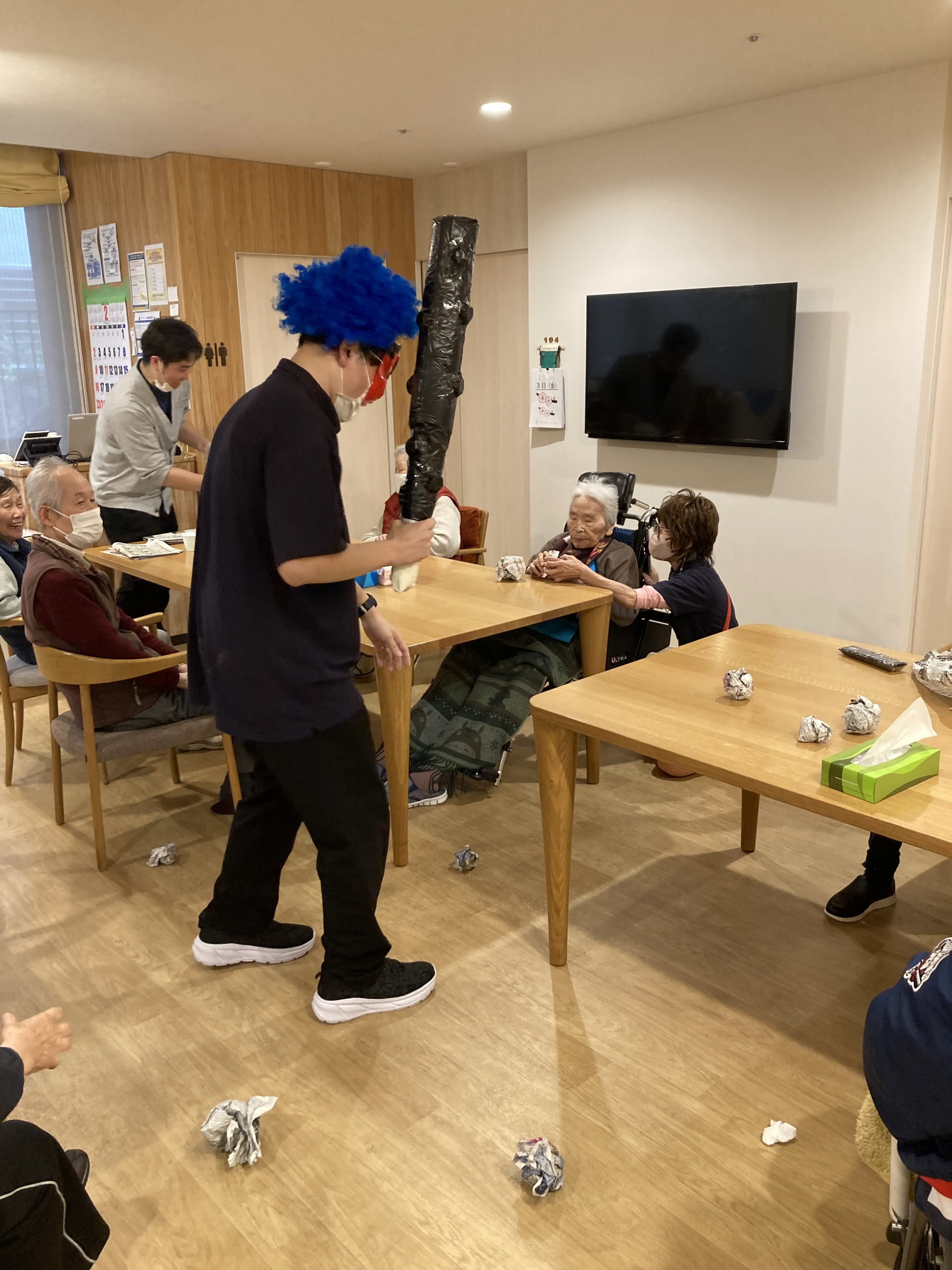 たまがなくなったので急遽新聞紙を丸めてもらいました。(後半に続きます)