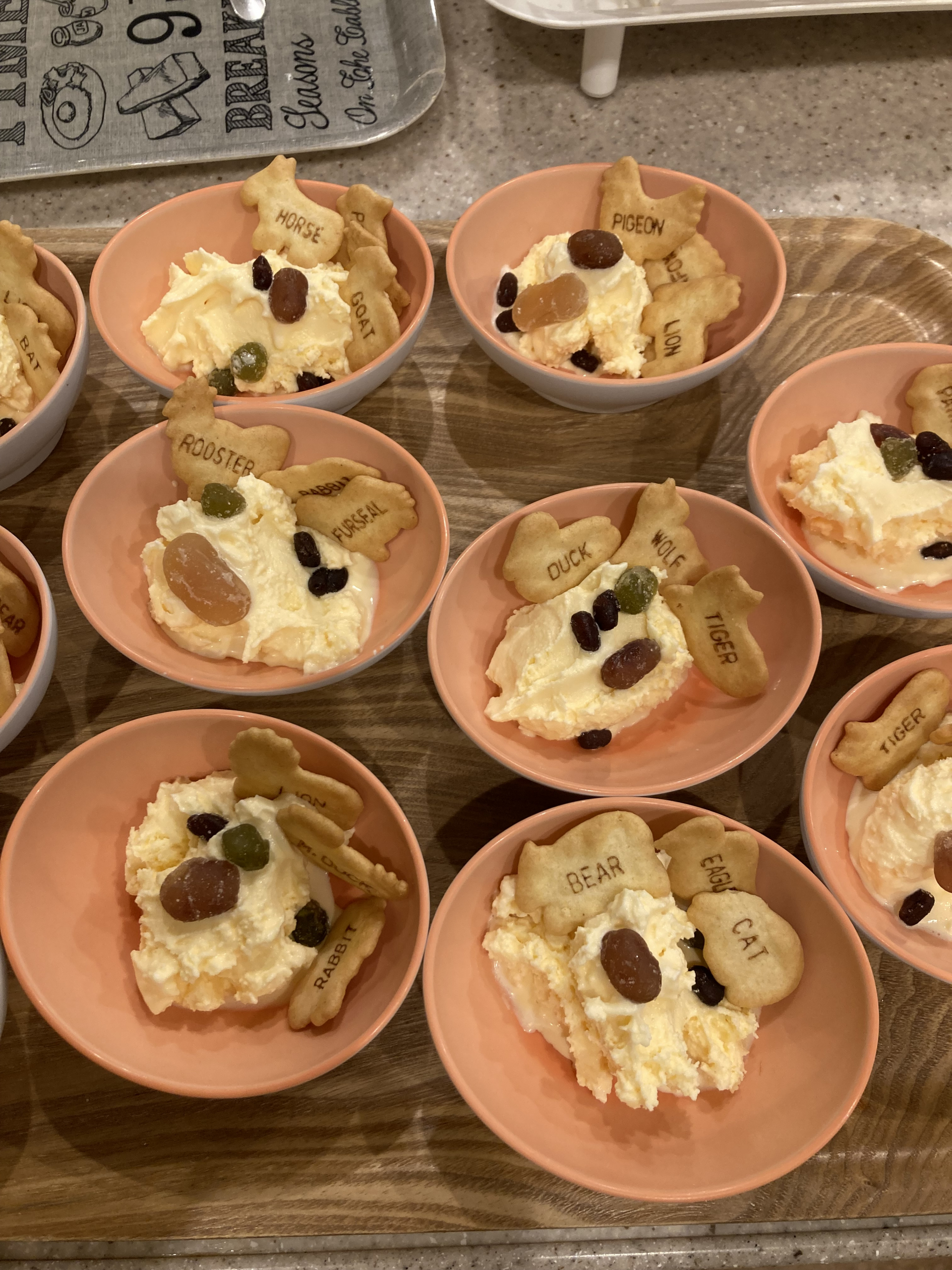 「トッピングの甘納豆と動物ビスケットがグットね」
