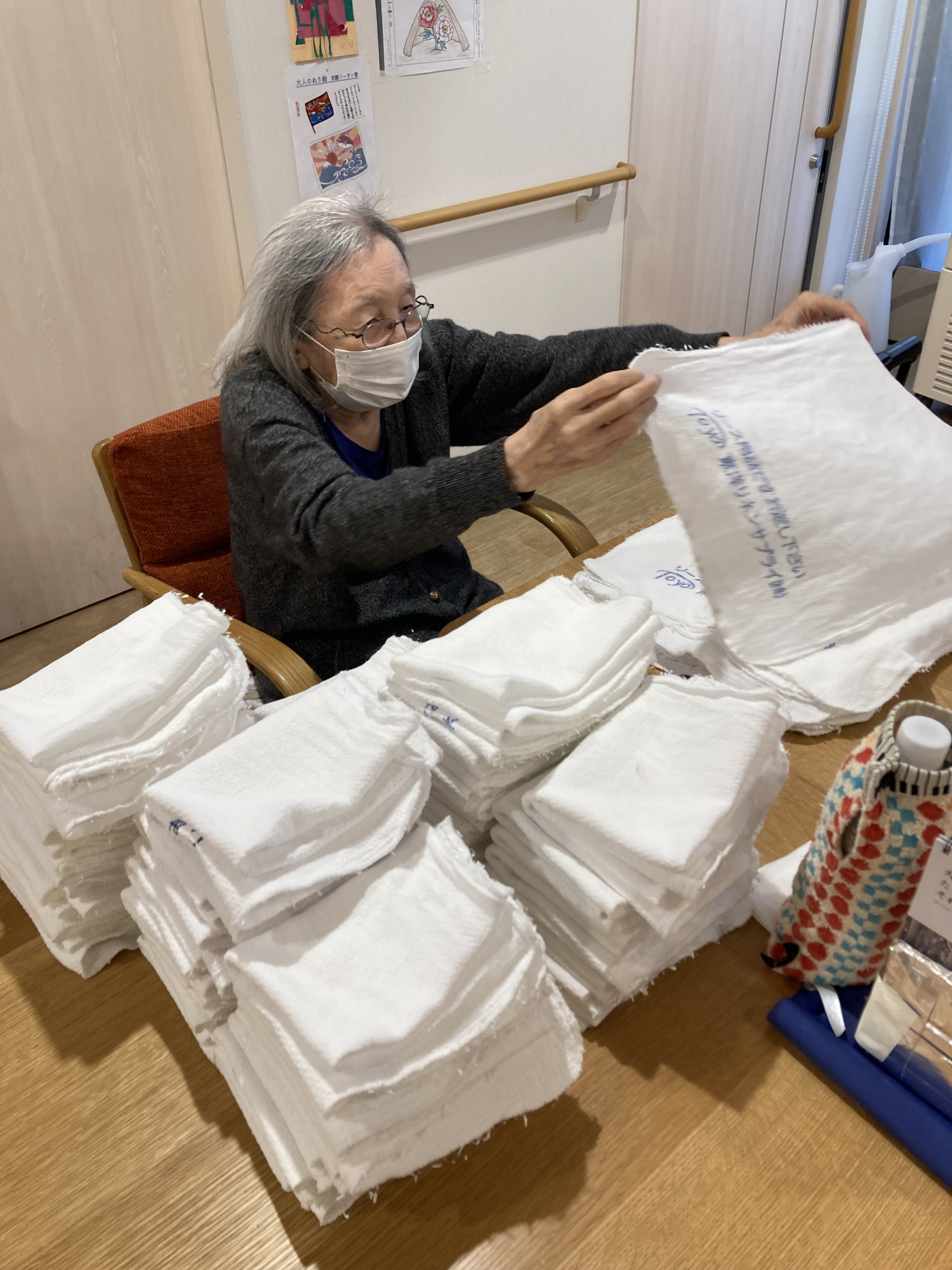 午後は黙々とタオル折りをされる方