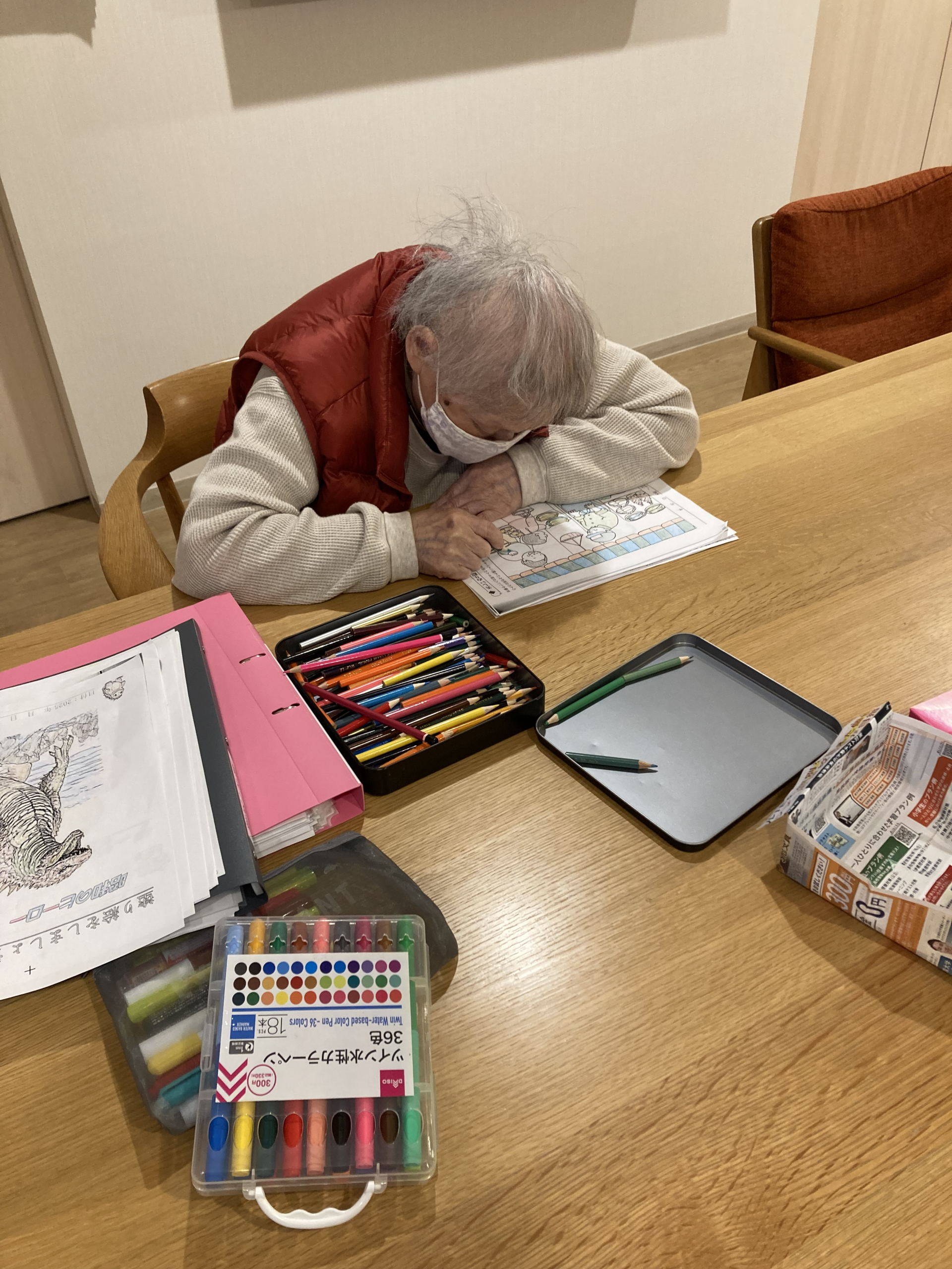 塗り絵に熱中をされる方
