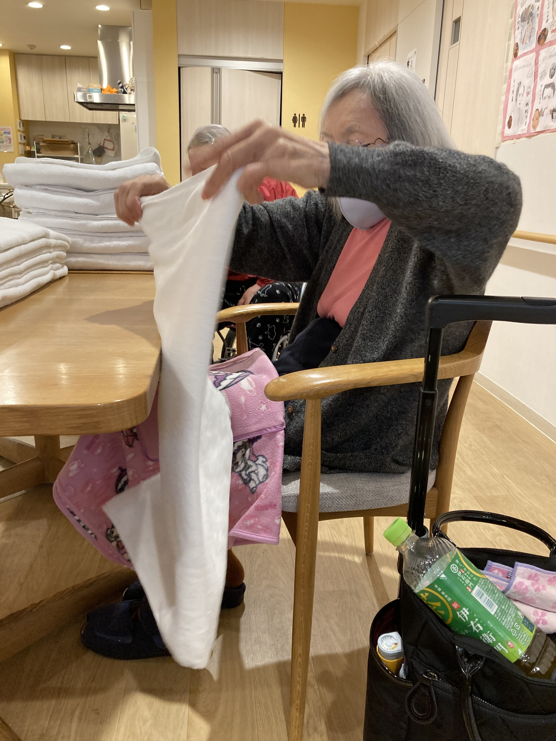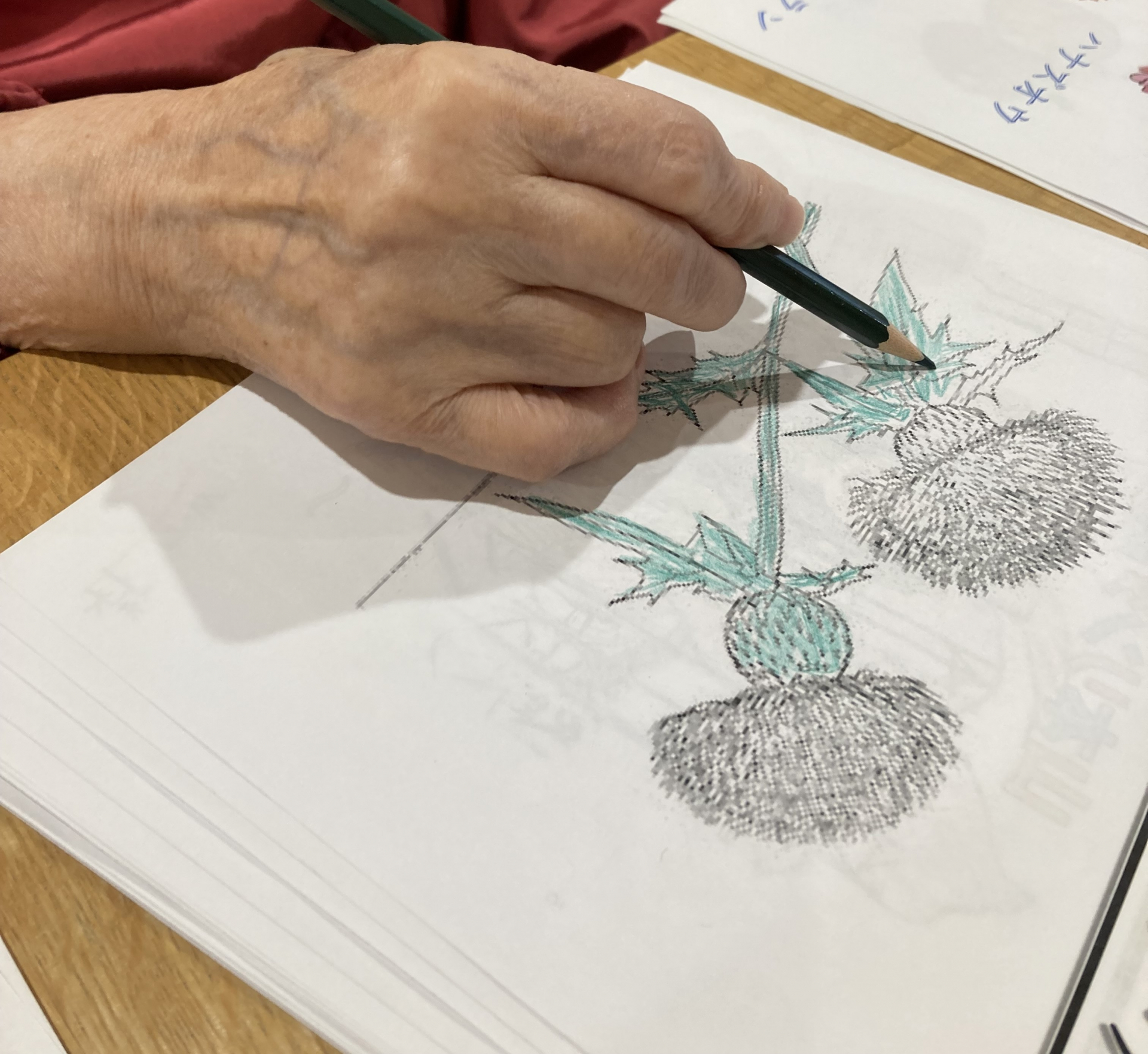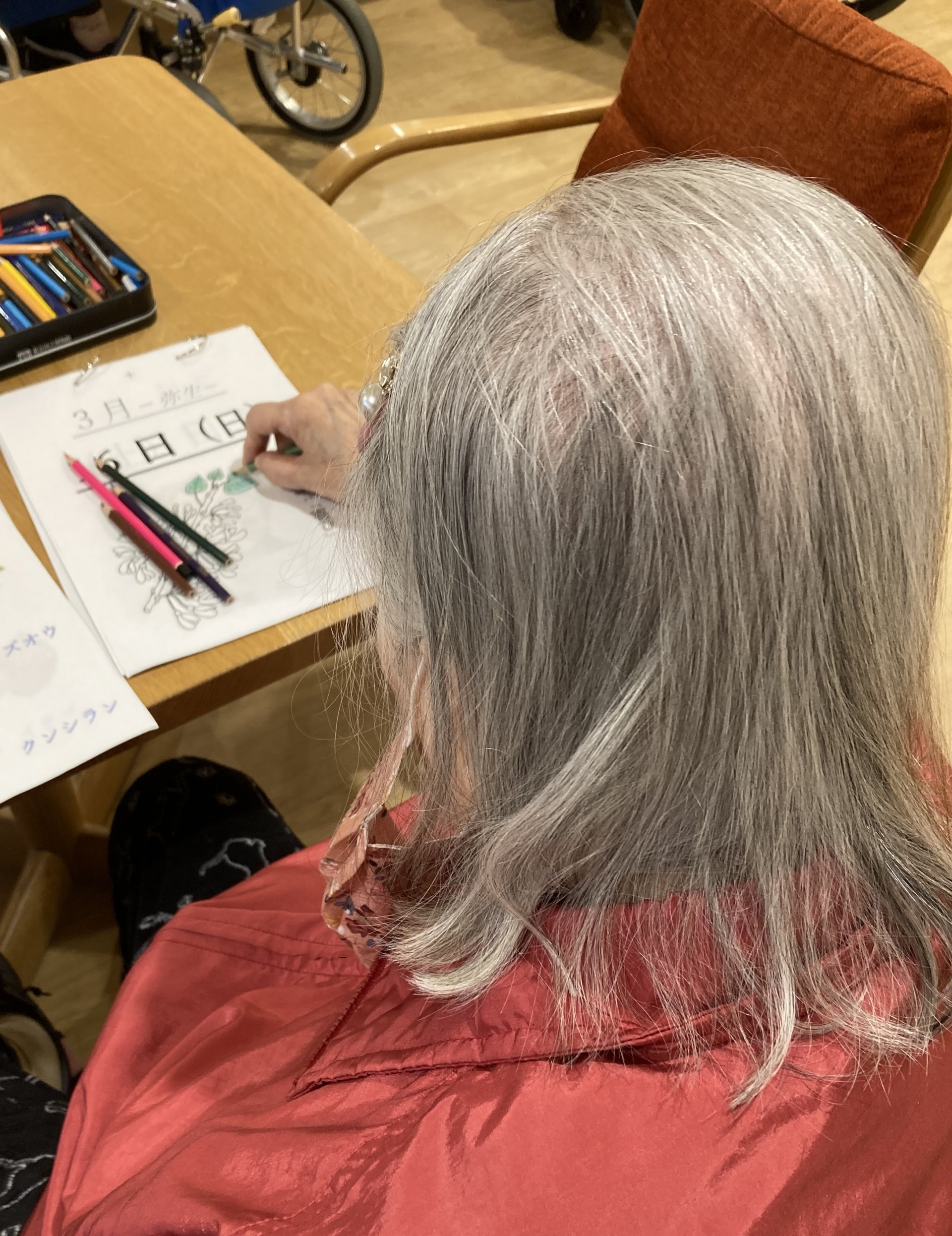朝食後、最近塗り絵に目覚めたAさま。色見本を見ながら日めくりカレンダーの塗り絵をしてくれました。