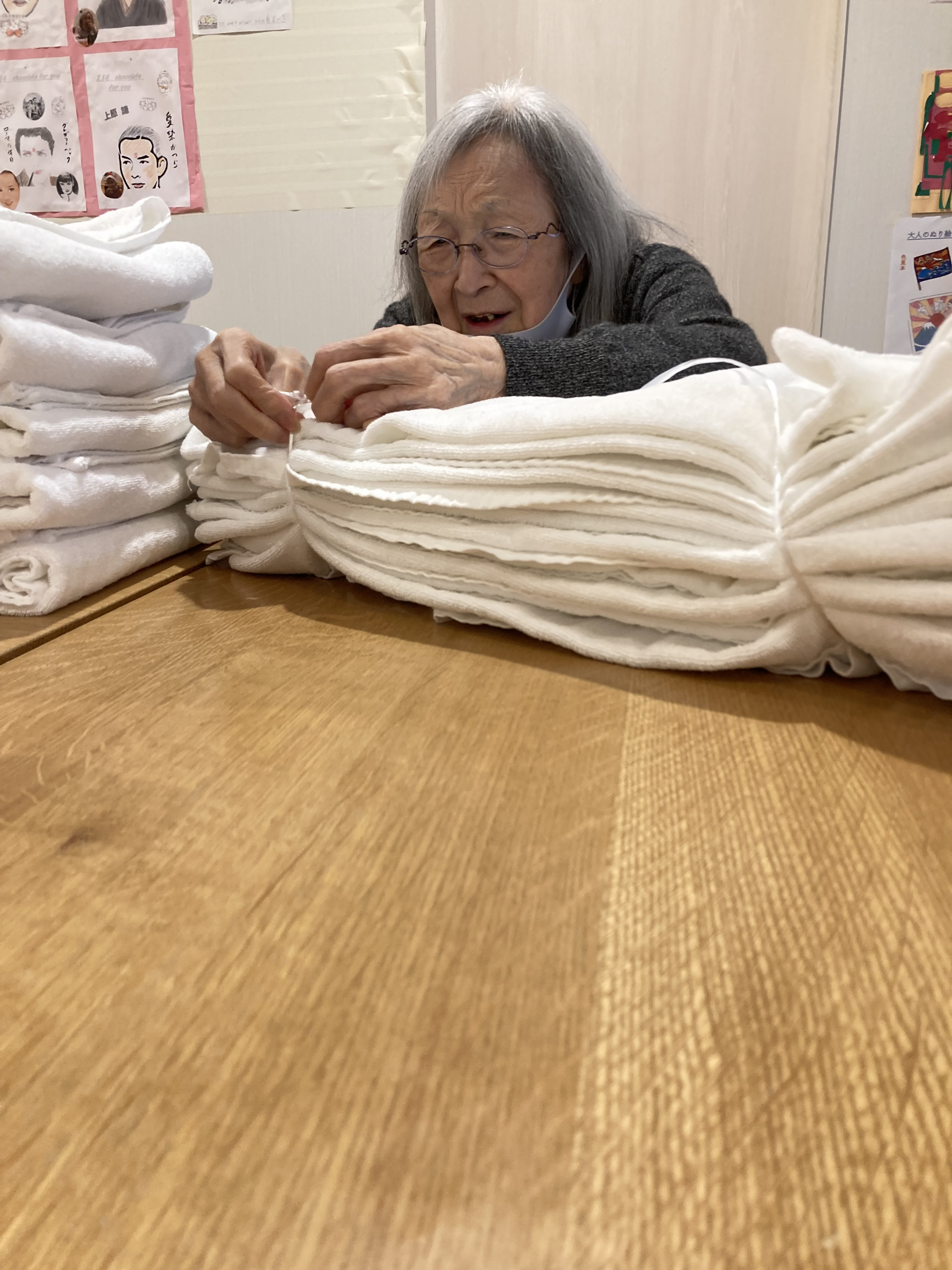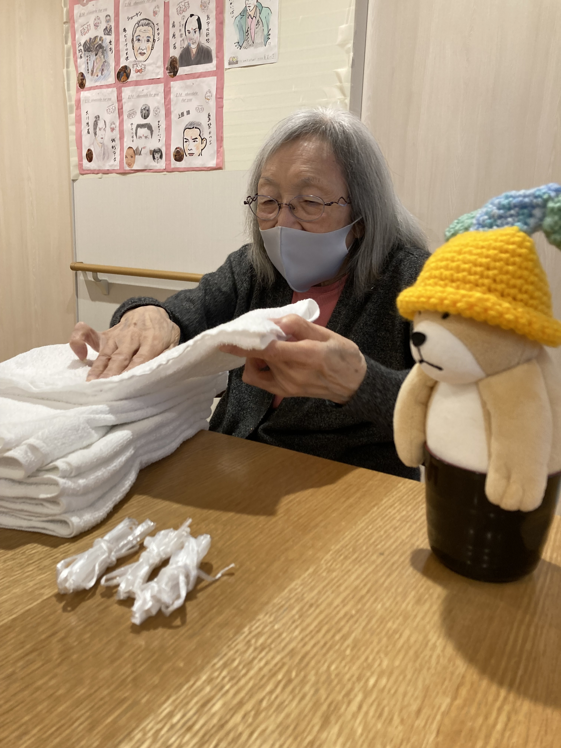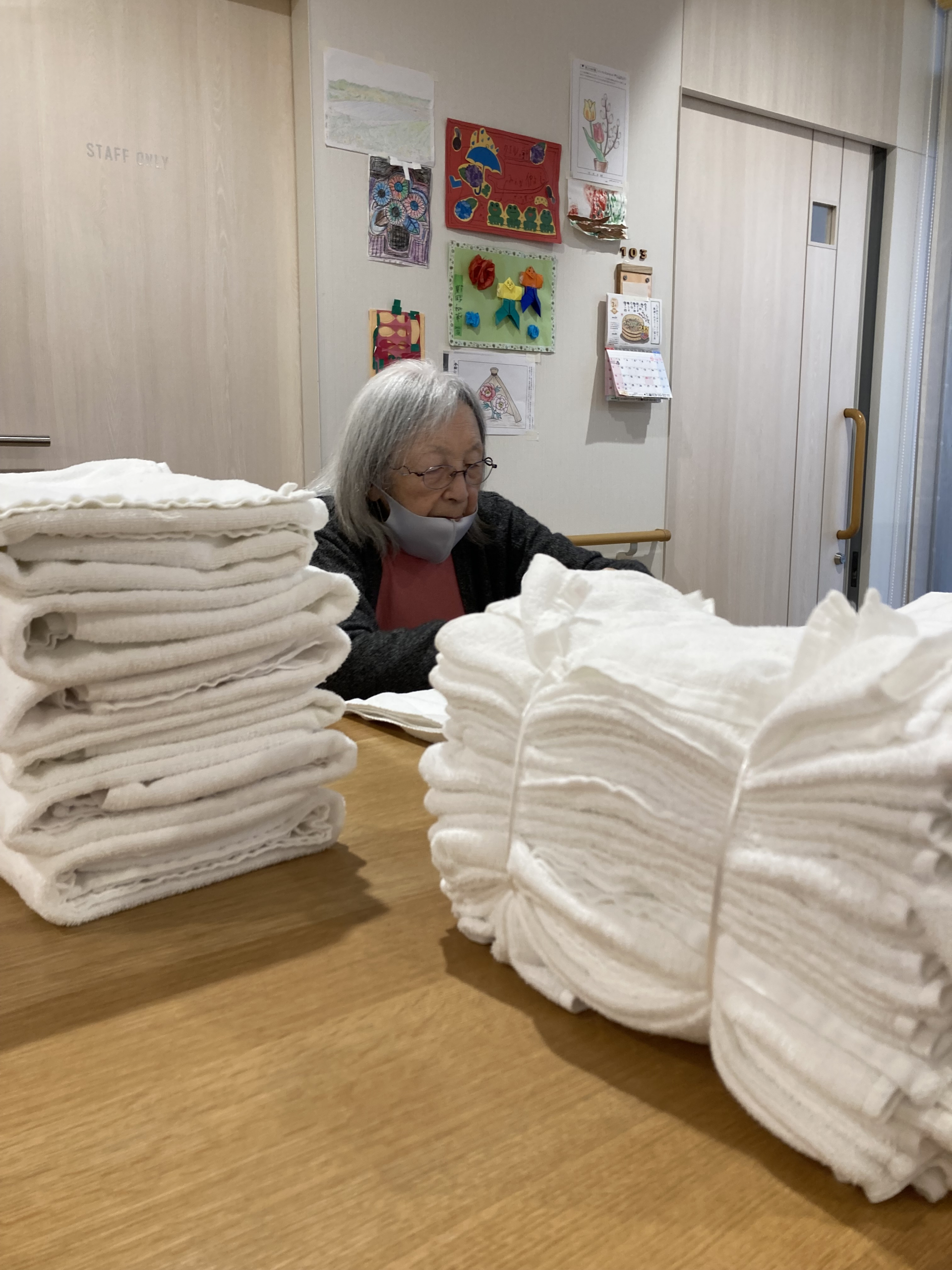 朝食後、最近塗り絵に目覚めたAさま。色見本を見ながら日めくりカレンダーの塗り絵をしてくれました。