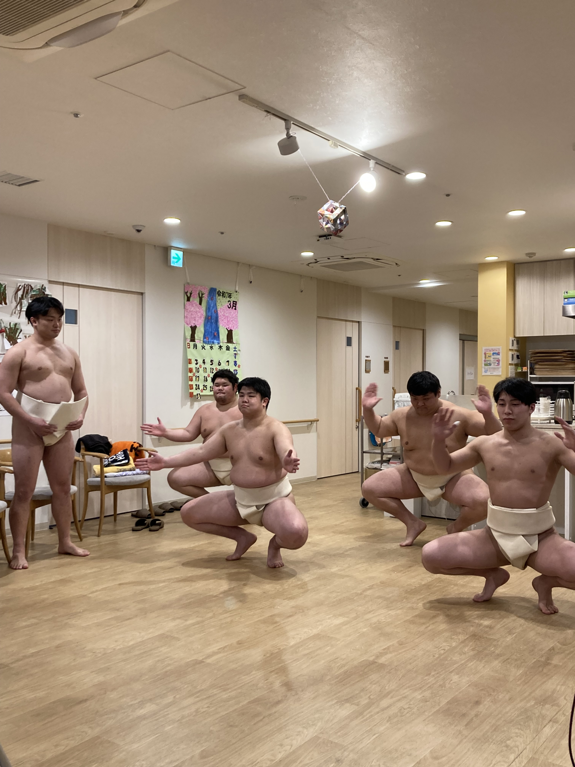 ぶつかり稽古に「迫力あるね!」と驚きの声