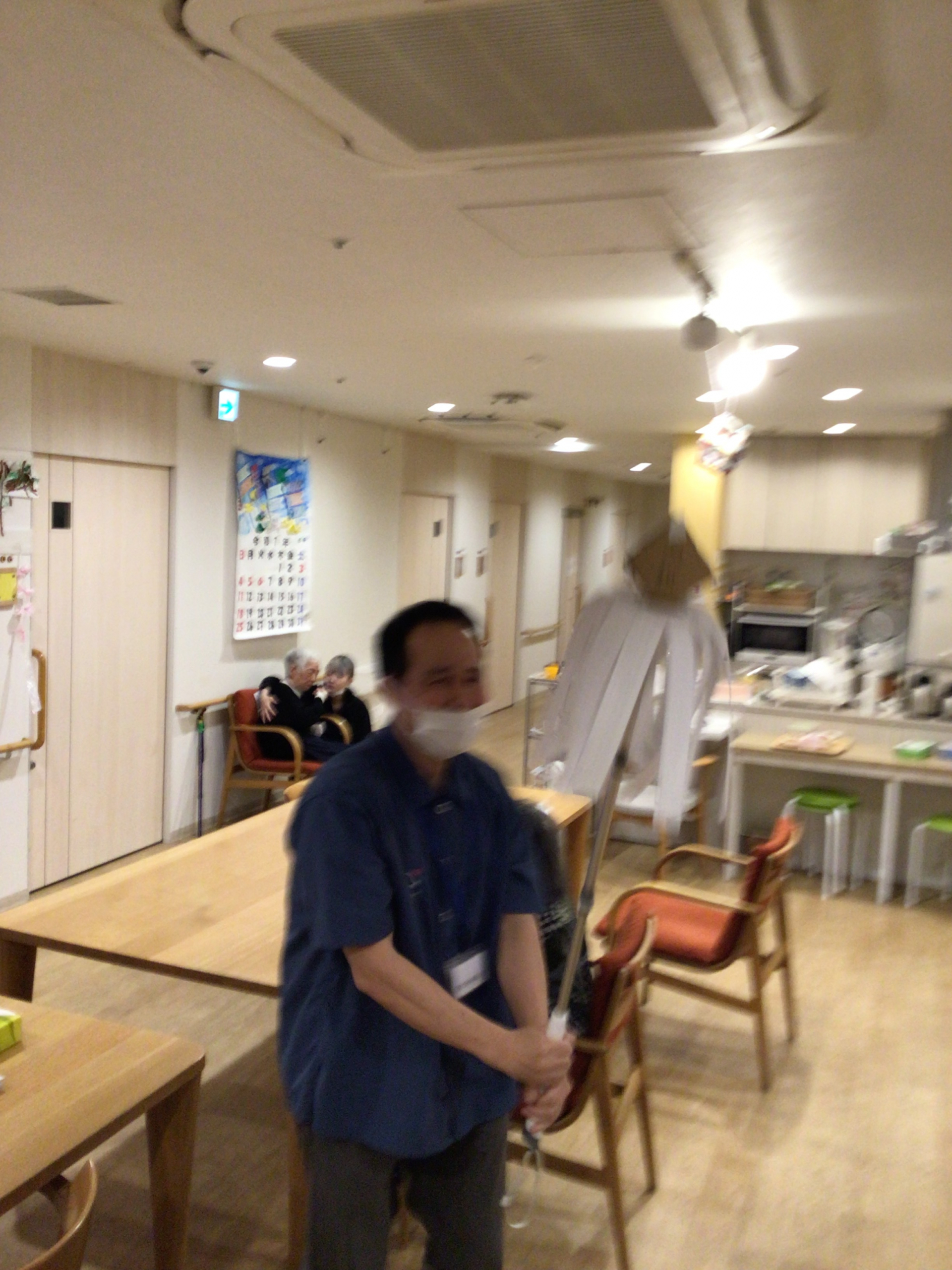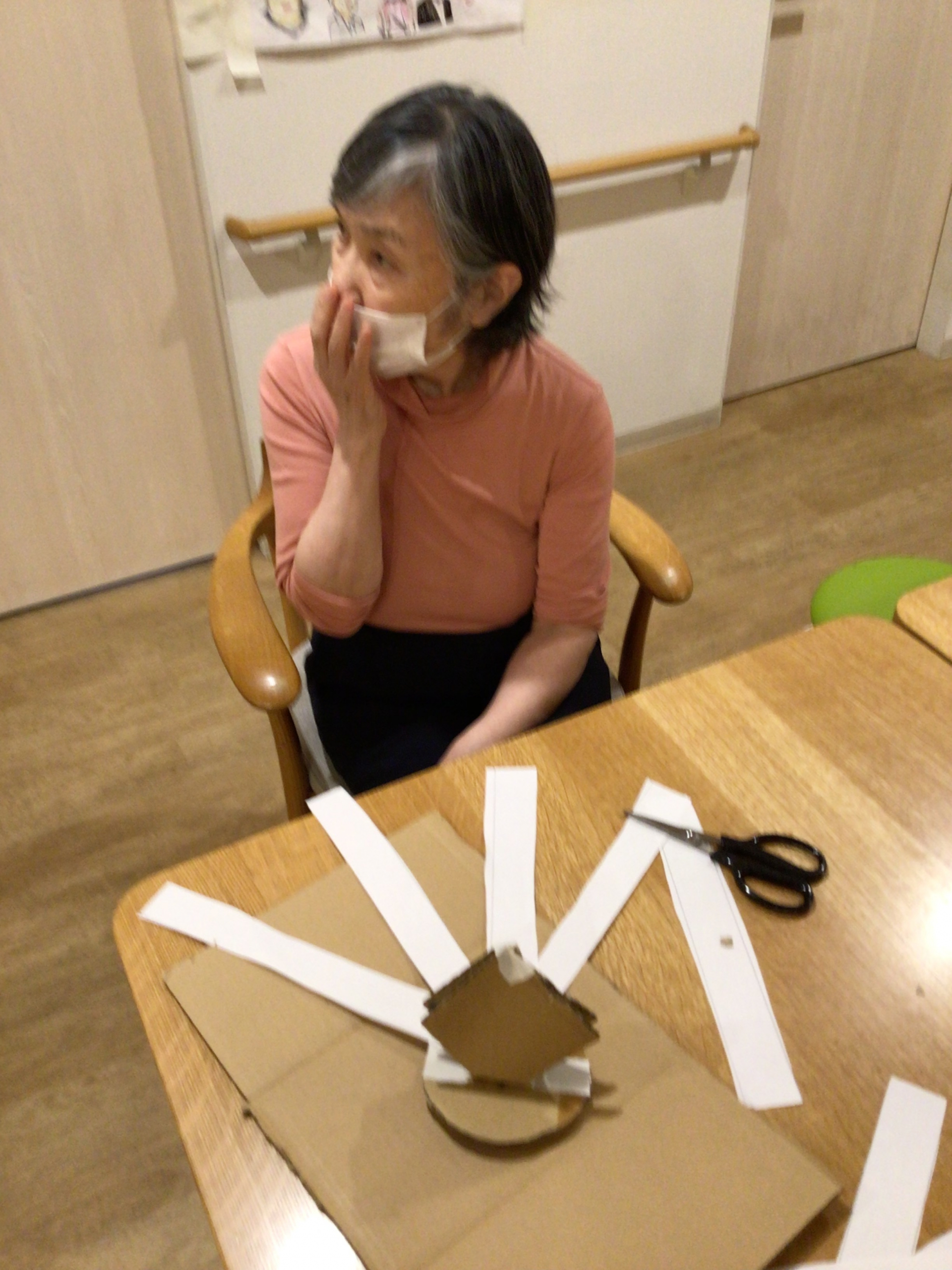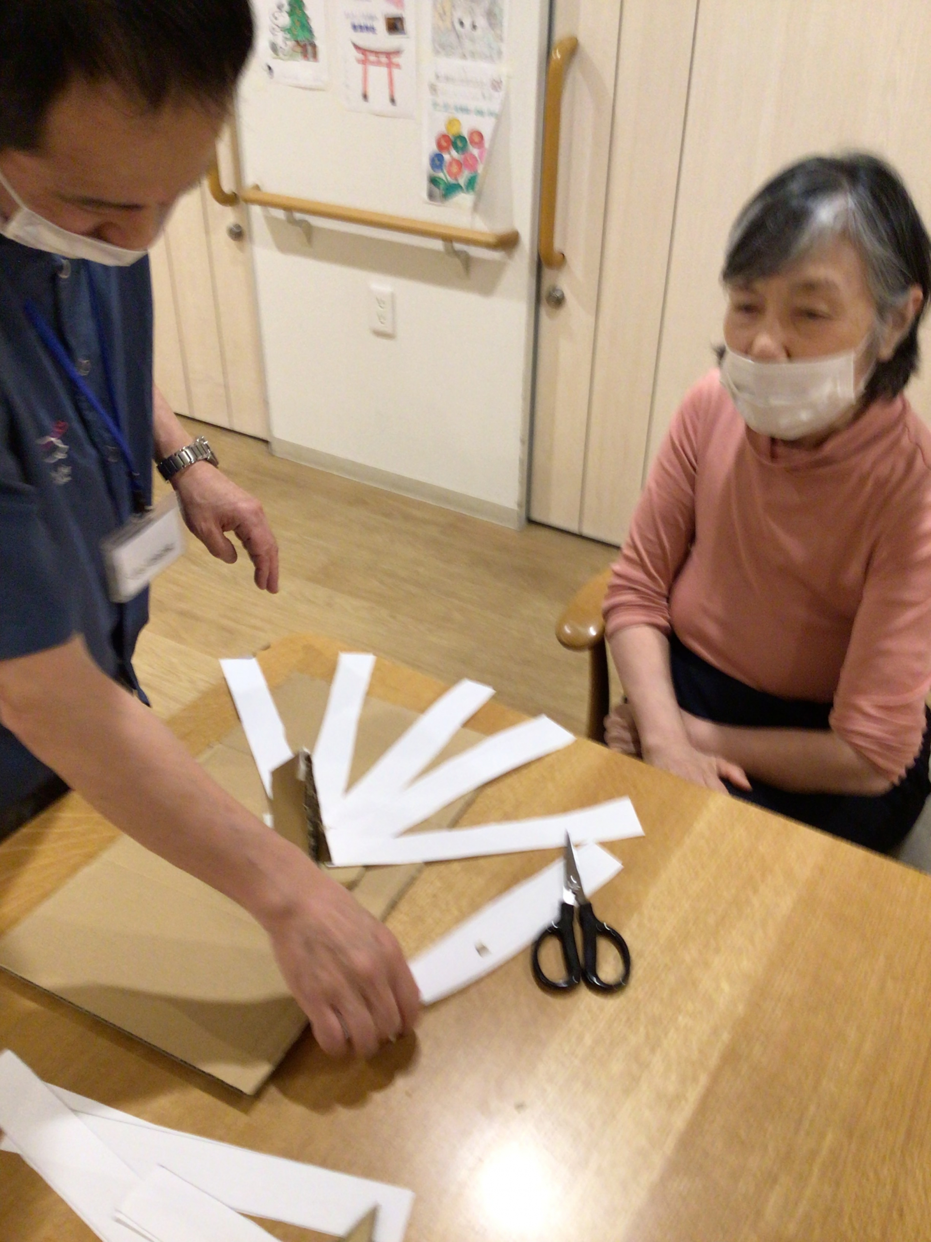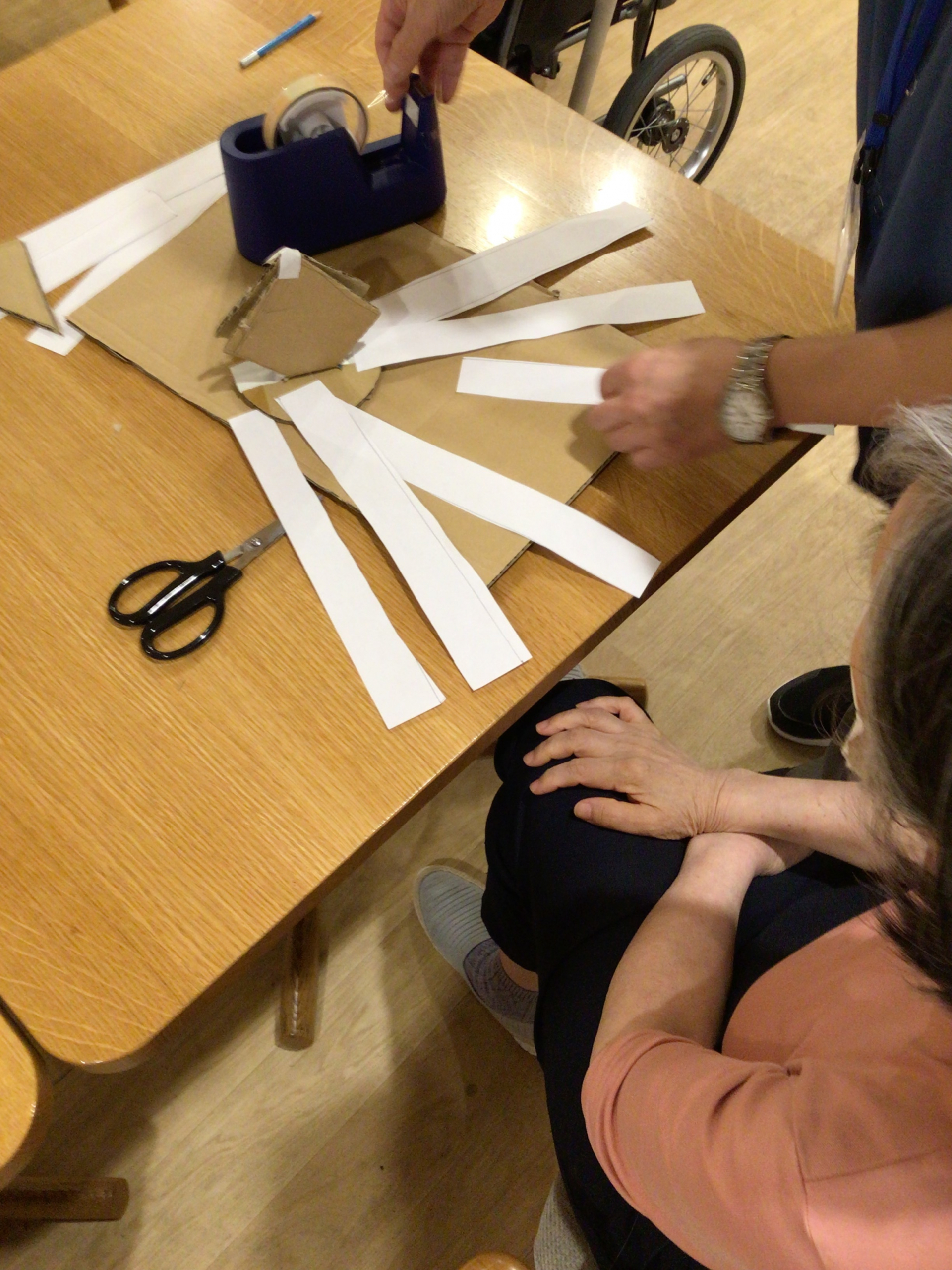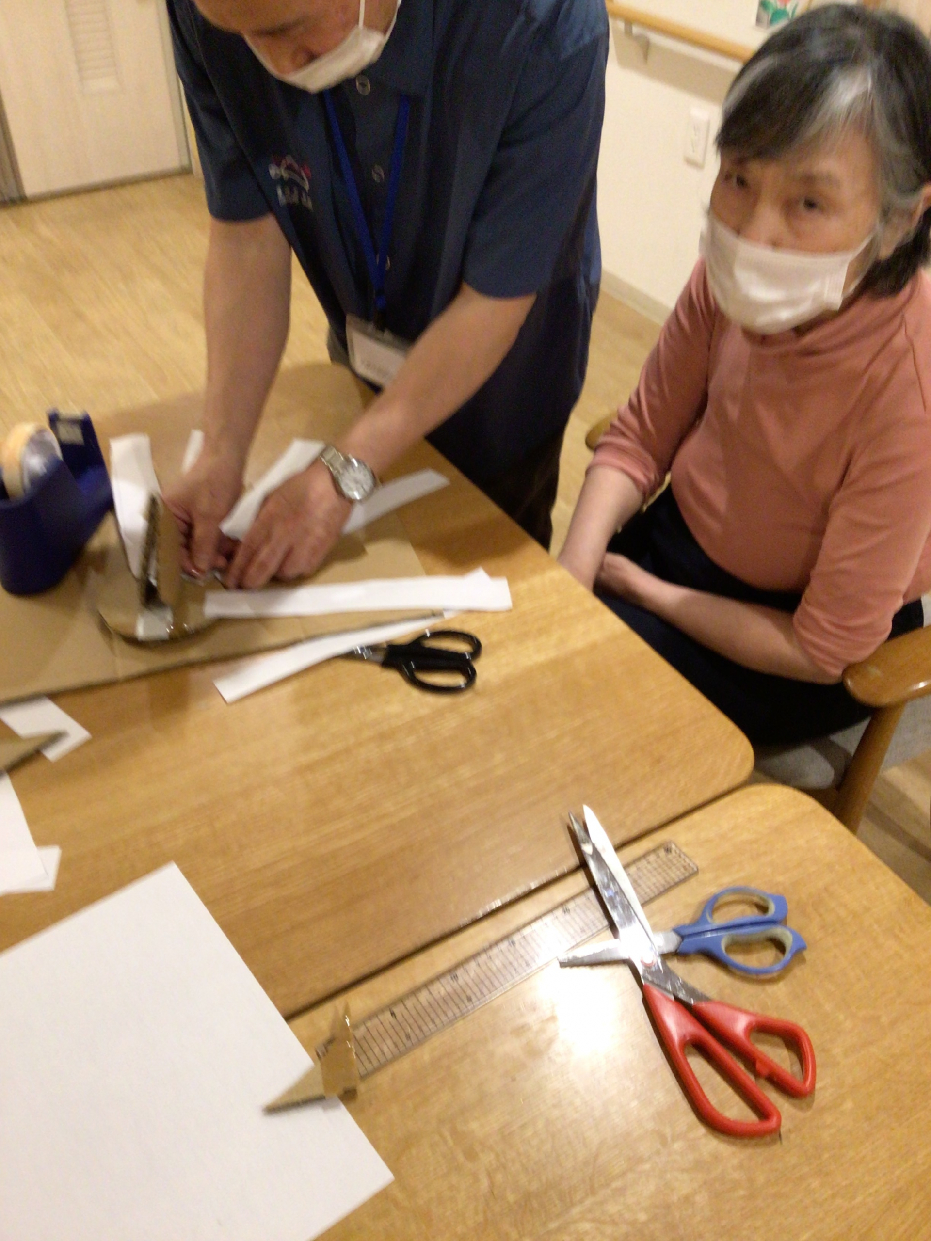段ボールとコピー用紙で利用者さんと工作をしました。