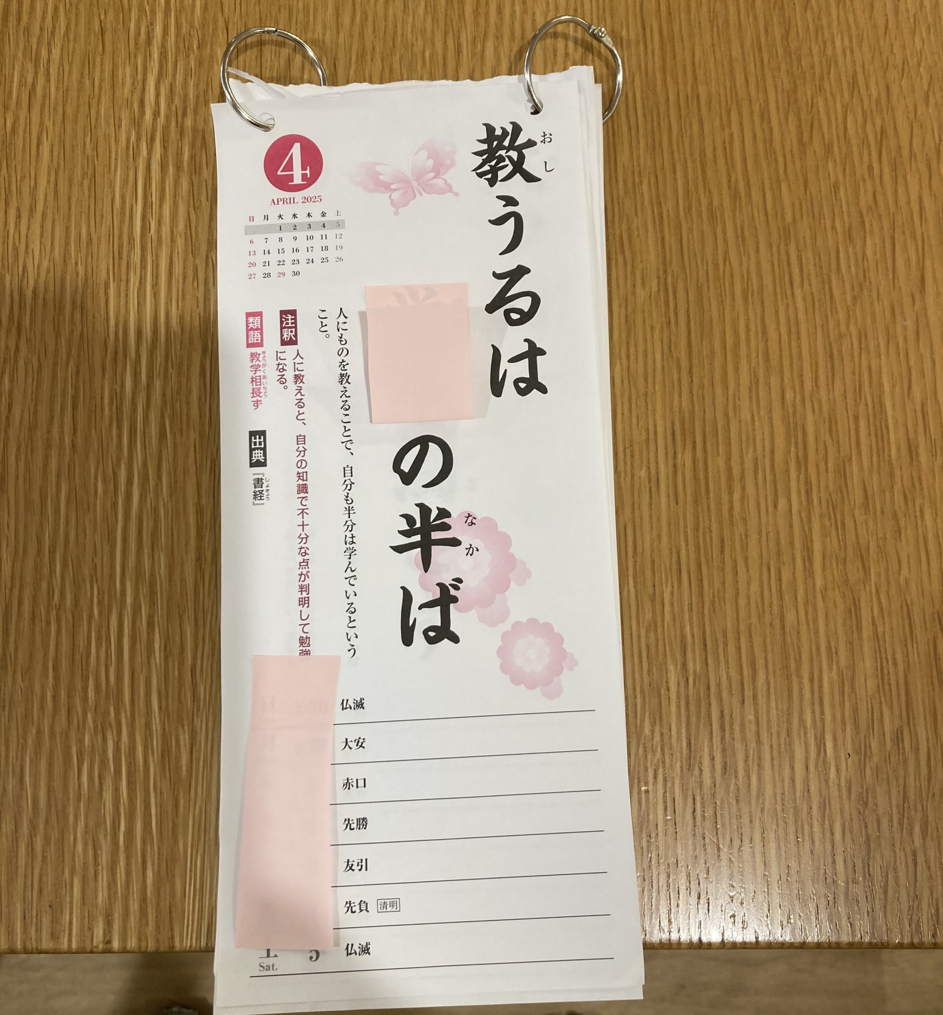 週めくりカレンダー