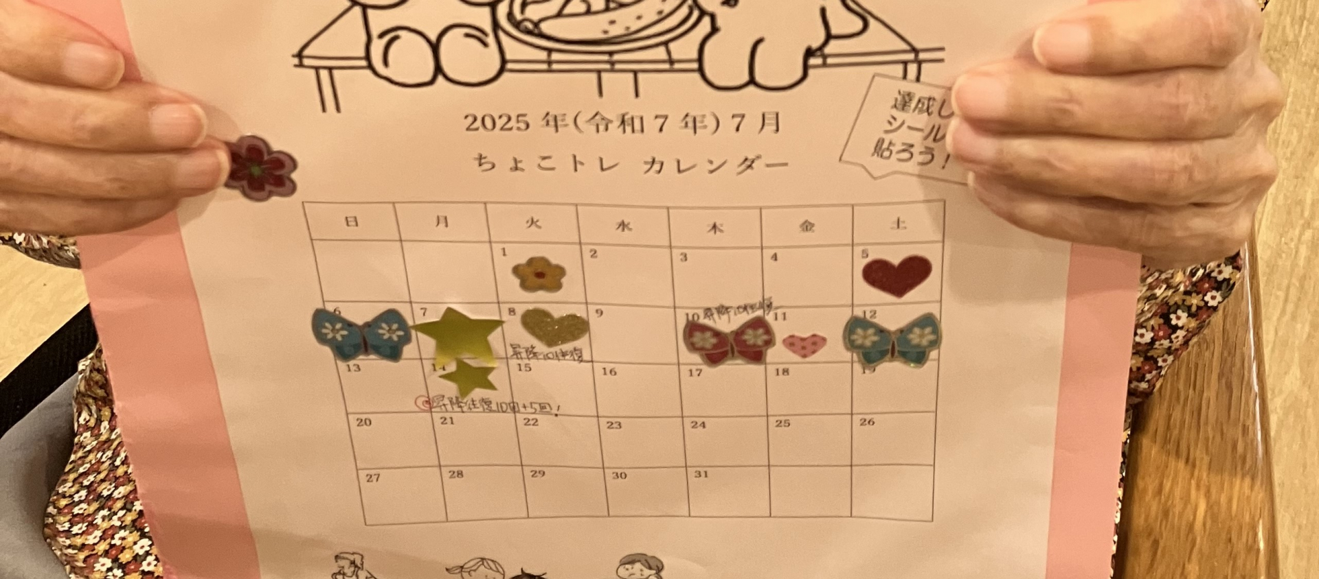 カレンダーに達成シールを貼られたり