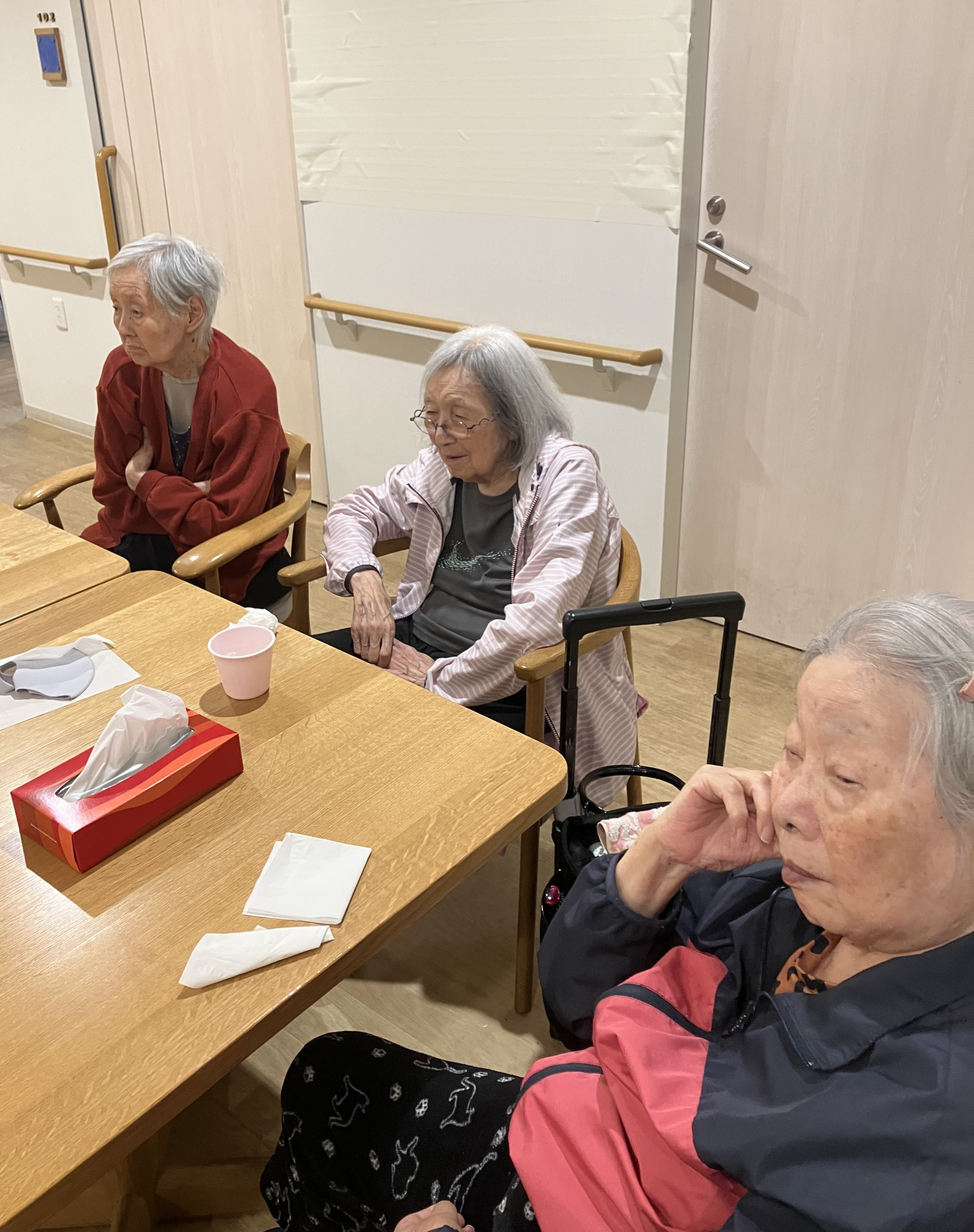 ショートスティ利用者様の夕食後のご様子です。