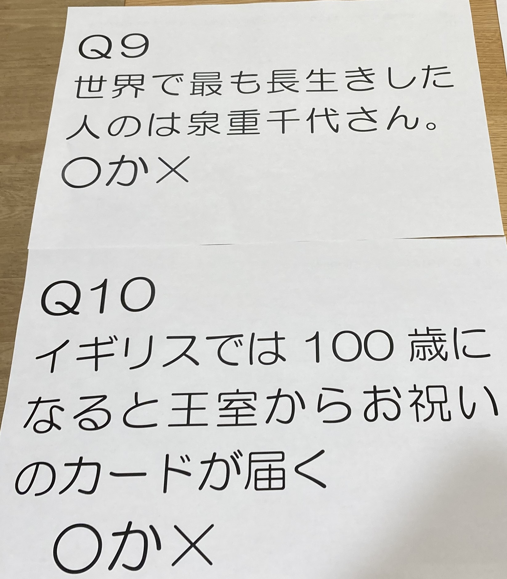 Q8 〇 悲田院 Q9 × きんさんぎんさんではありません。