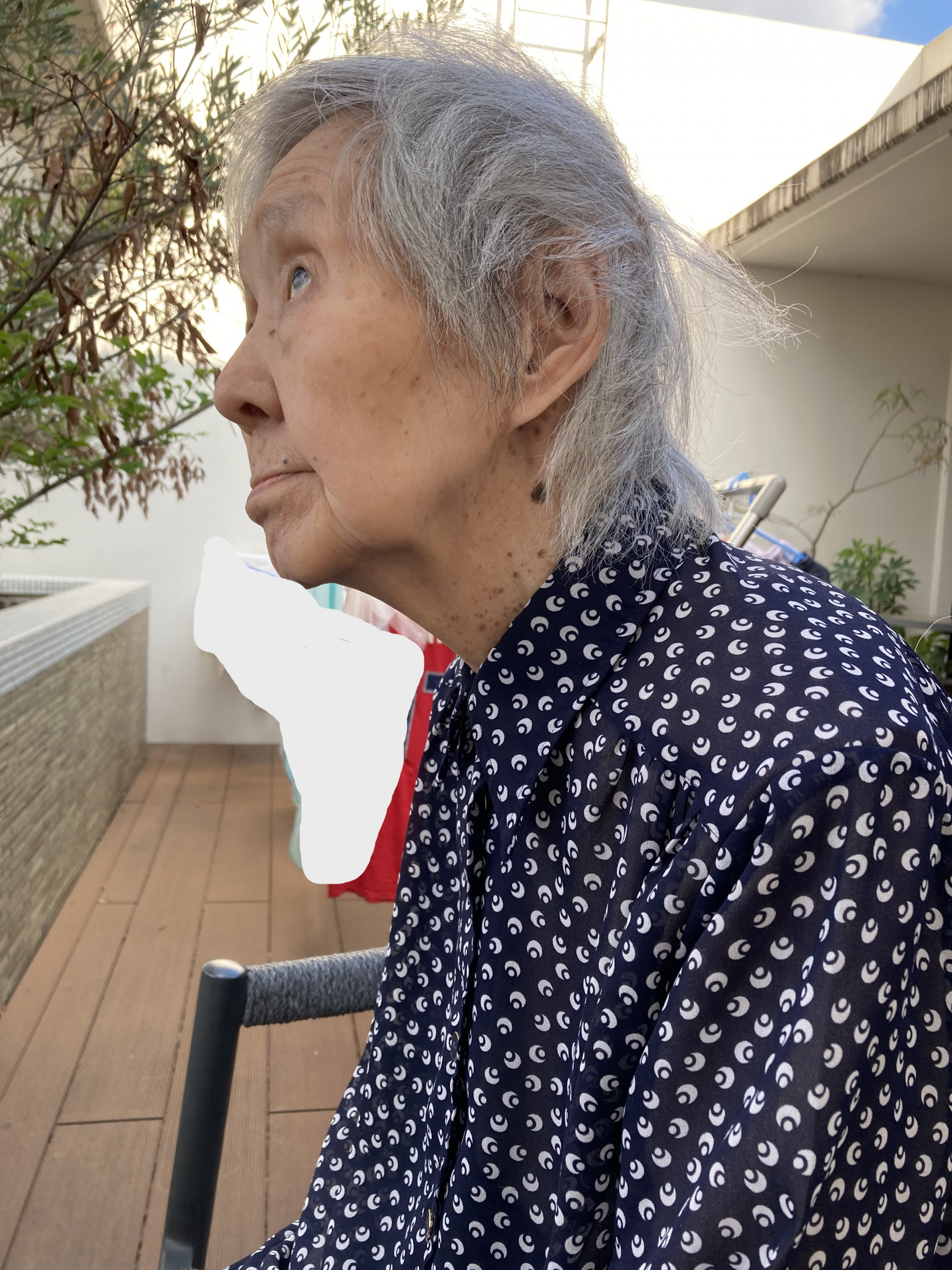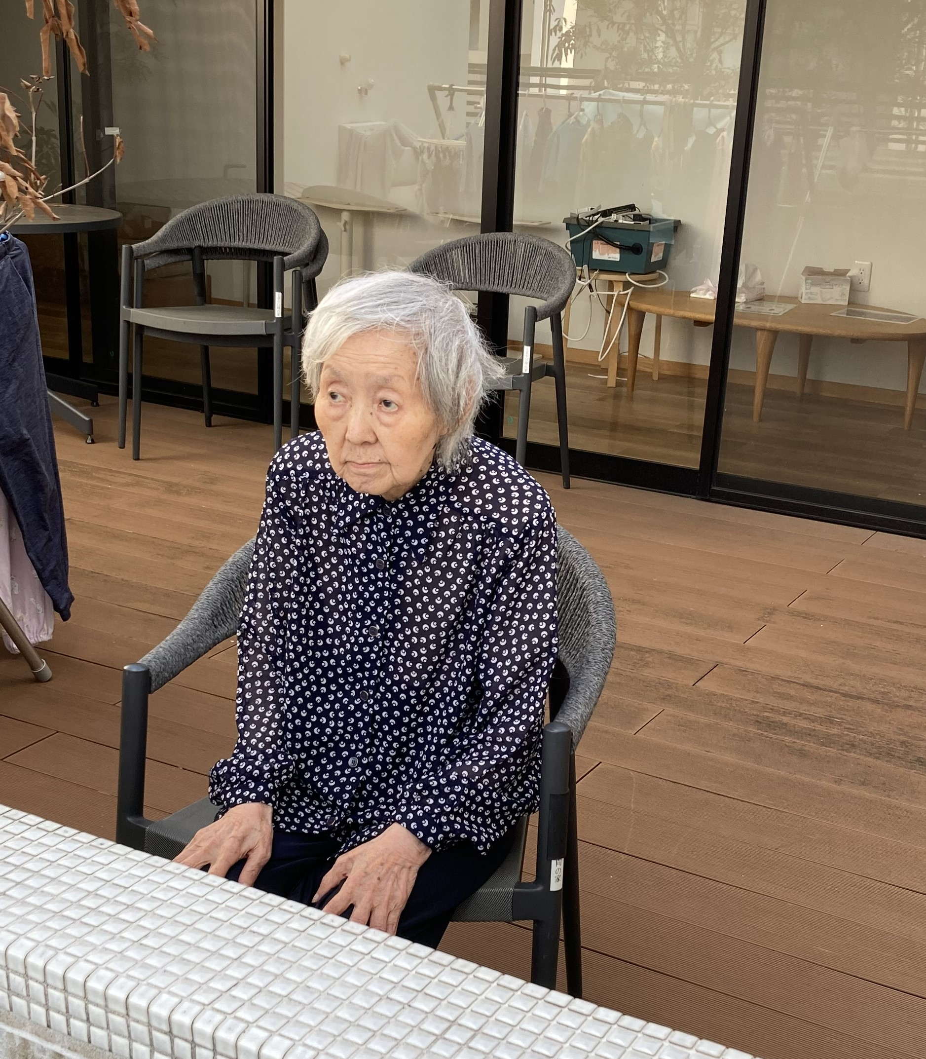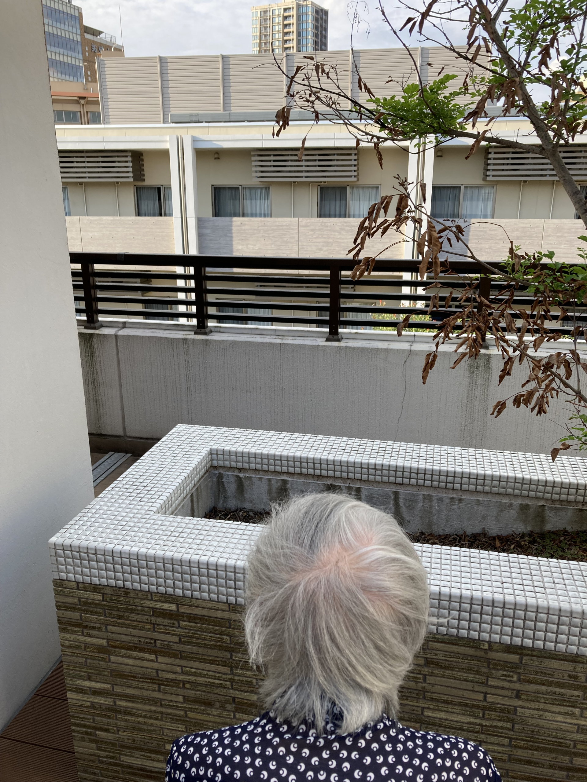 利用者さまを3階のベランダに誘いました。