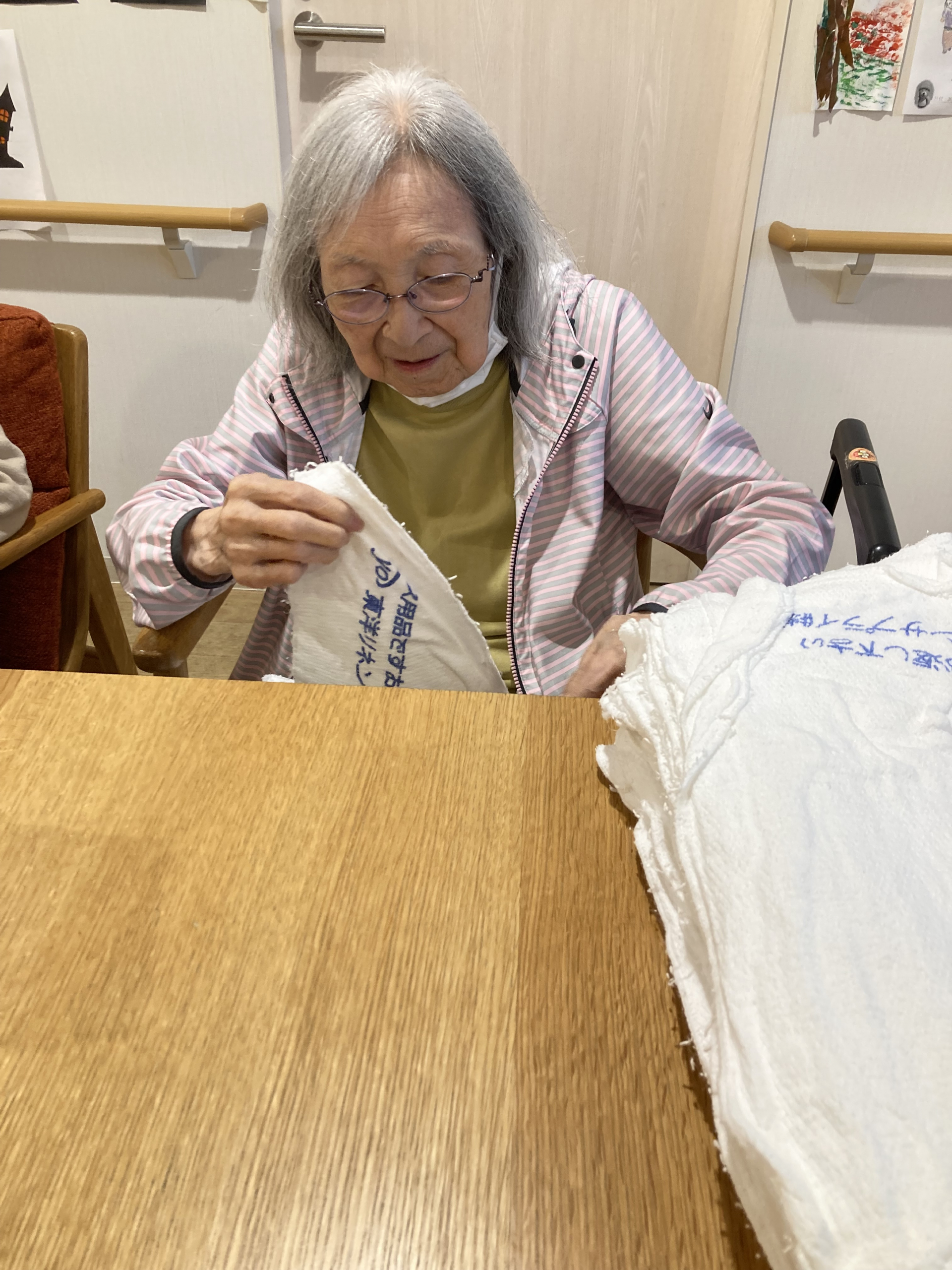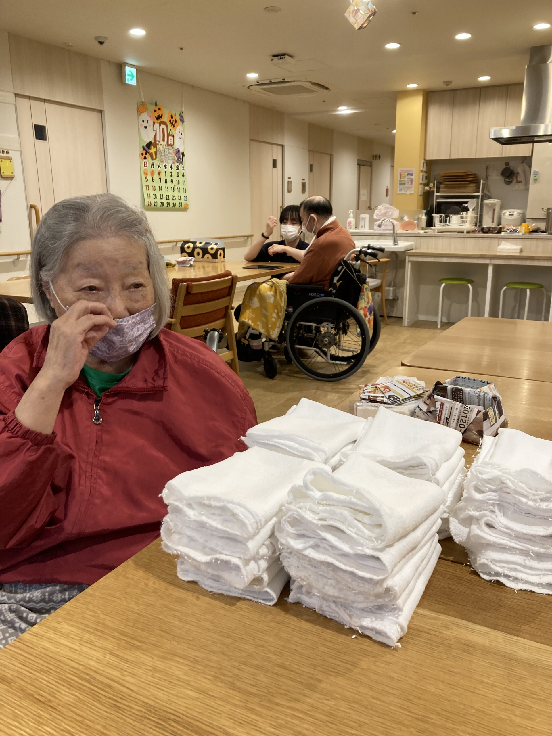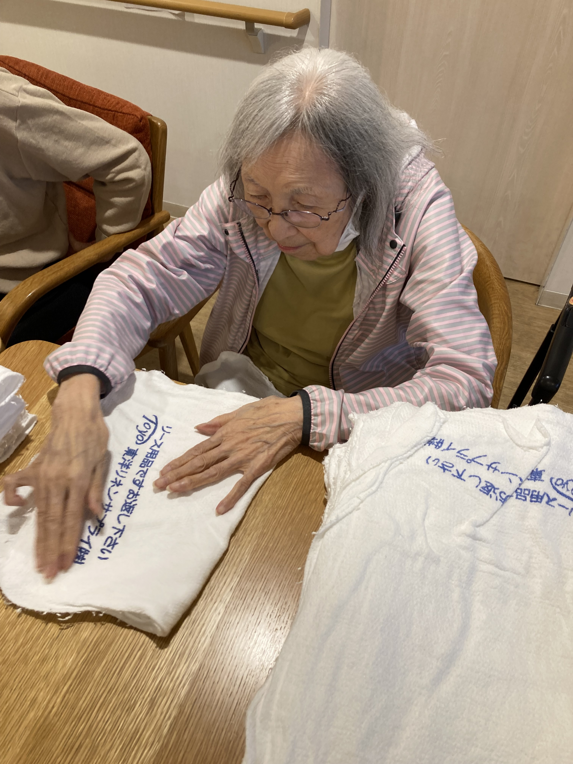 タオルを並べるお手伝いをしてくれました。