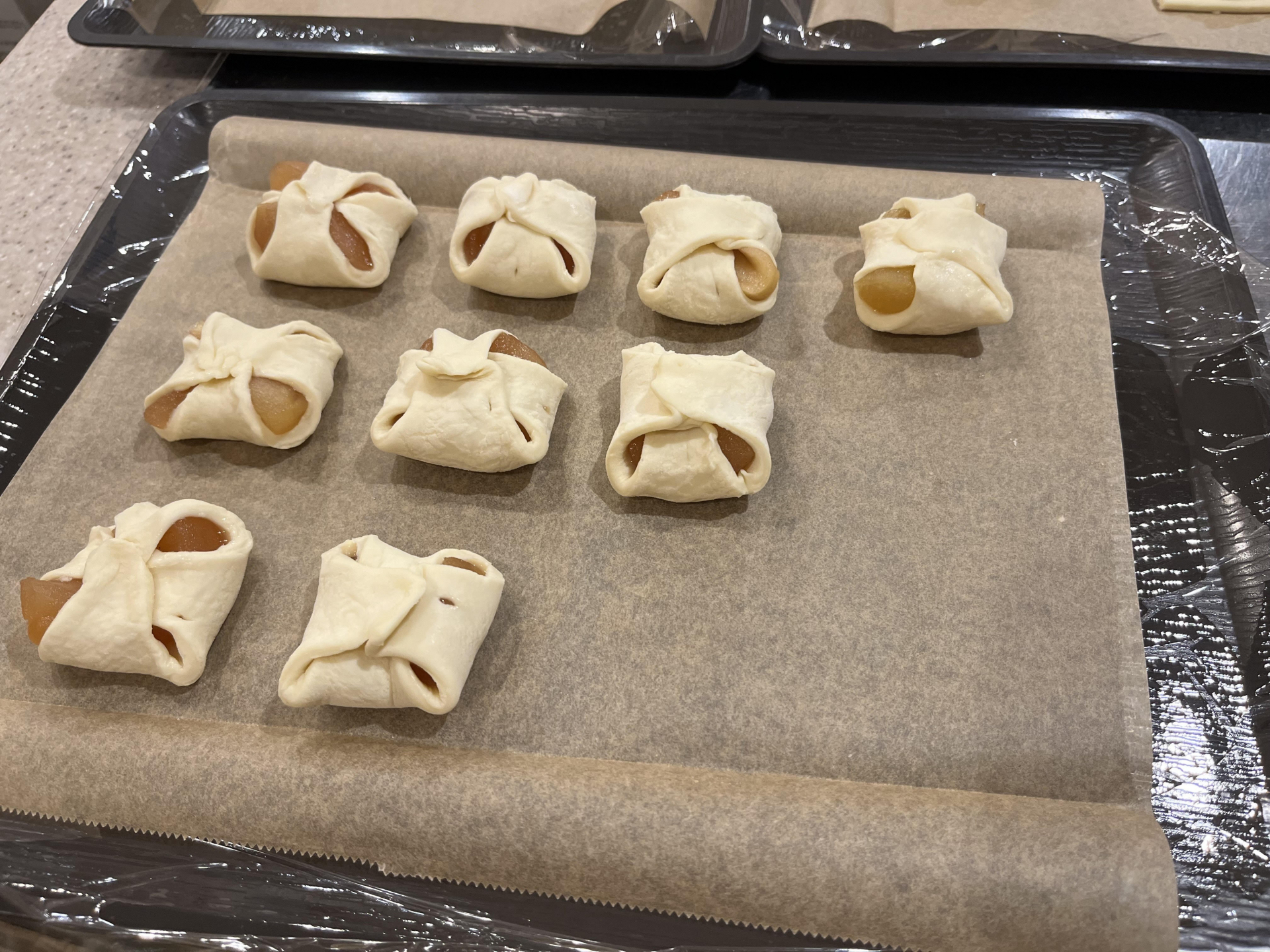 カットしたパイ生地の上に先ほどのリンゴをのせていきます!