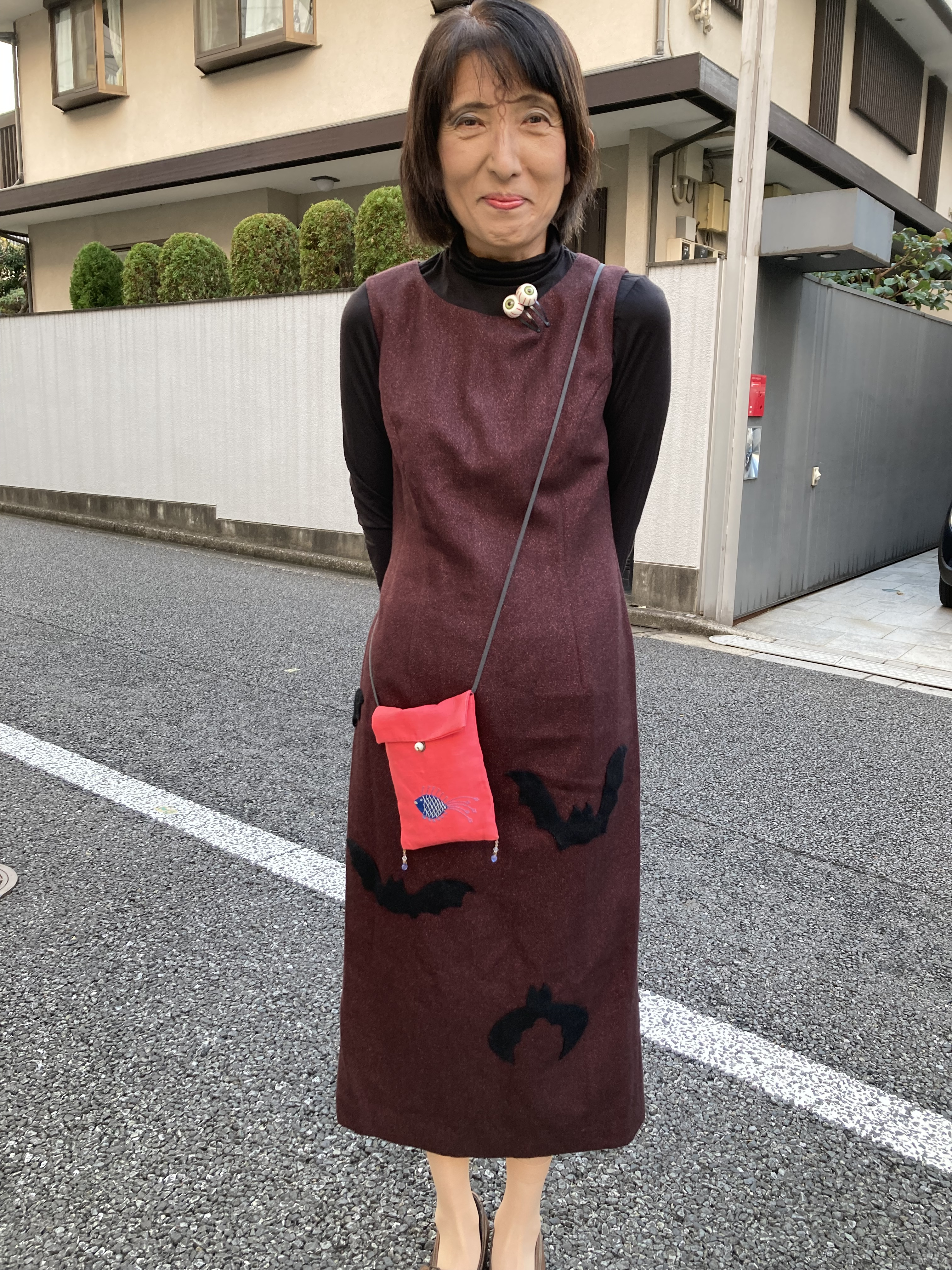 あ、ご近所さん発見! ワンピースに蝙蝠を縫い付けての仮装です(^^♪