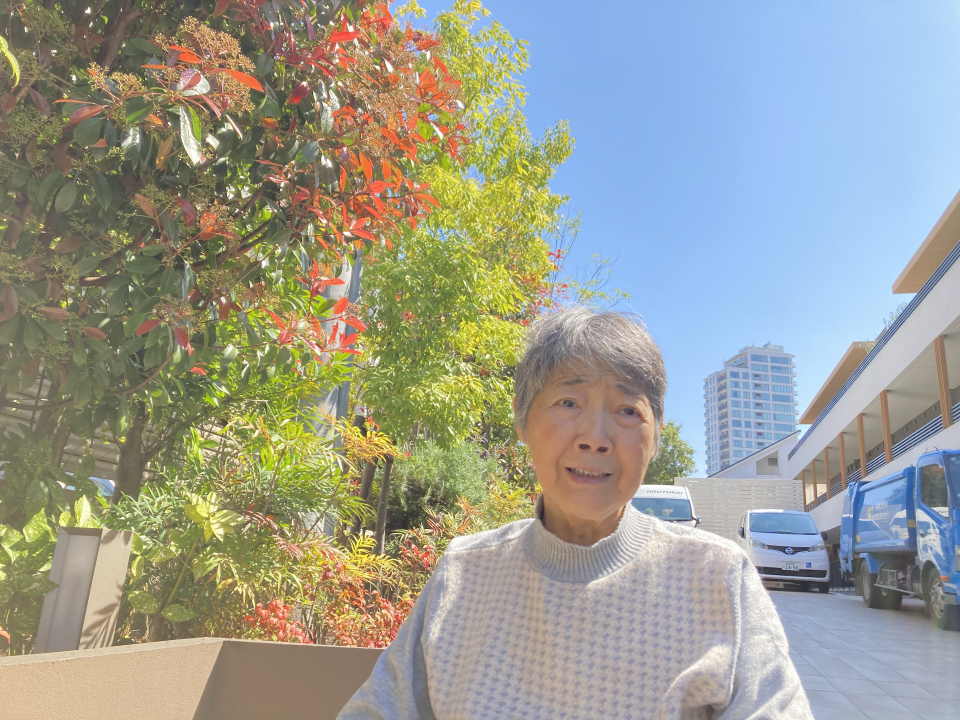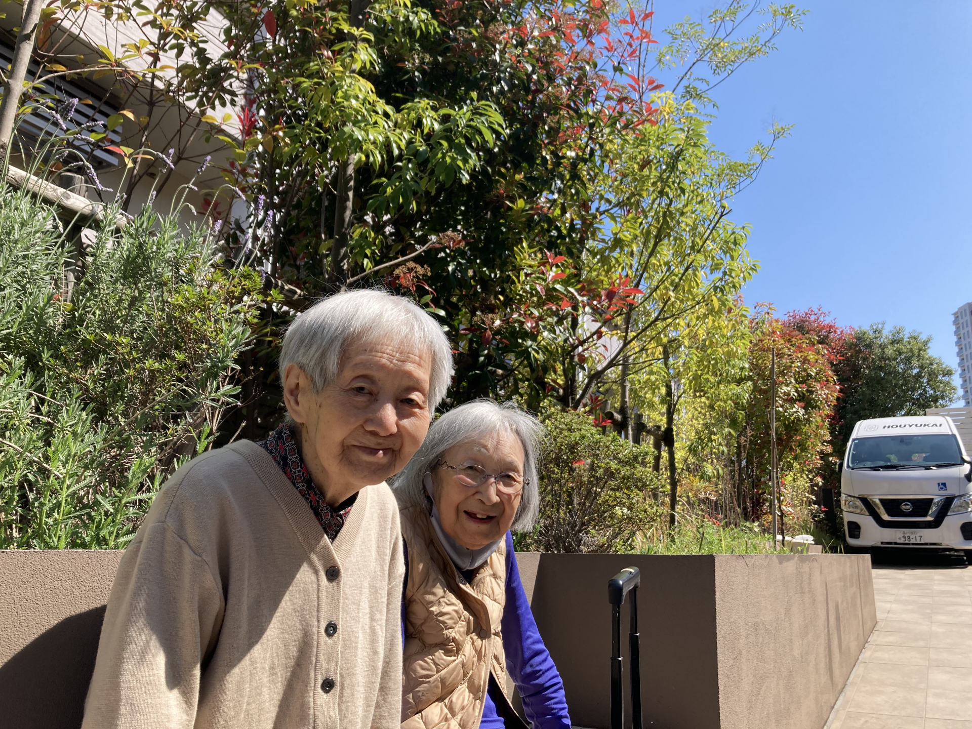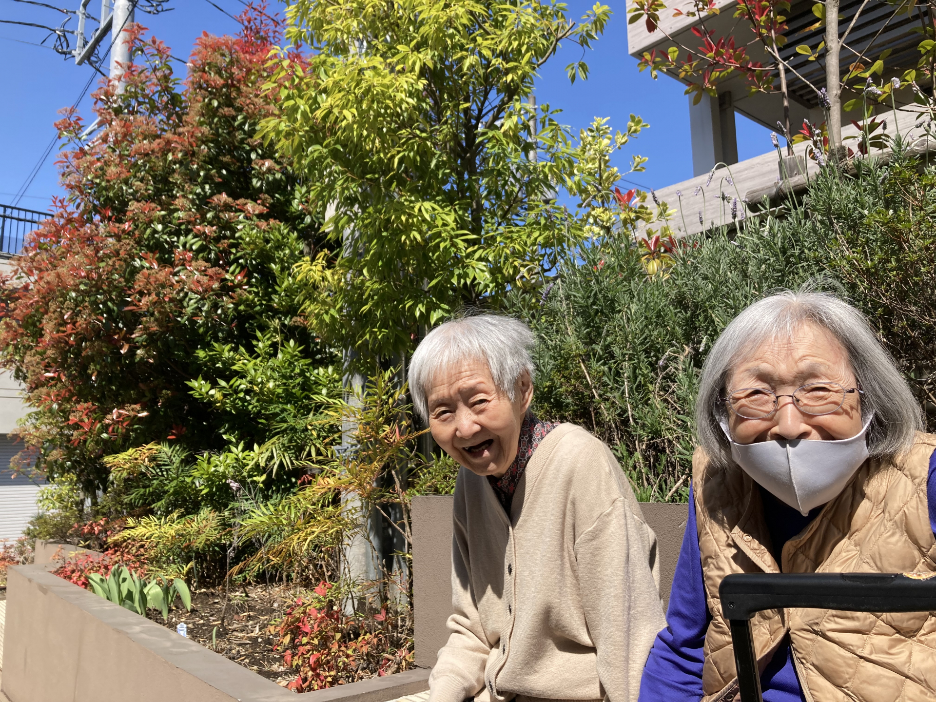 施設のパーキングで日向ぼっこをしました。