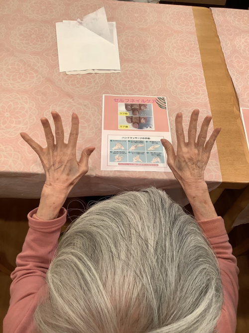 2025.12.01 美容レク~アロマキーホルダー~ 活動報告 #優っくりグループホーム杉並沓掛 #訪問美容 #美容レク #レクリエーション #アロマ #工作 2025.10.28 美容レク(ネイル&ハンドマッサージ) 活動報告 #優っくりグループホーム杉並沓掛 #美容レク #ネイル #ハンドマッサージ 2025.07.14 美容レク(フットトリートメント) 活動報告 #優っくりグループホーム杉並沓掛 #美容レク #フットトリートメント 2025.06.14 ツヤツヤネイル 活動報告 #優っくりグループホーム杉並沓掛 #美容レク #ネイル #ツヤツヤ #オシャレ 2025.04.14 美容レク(頭皮マッサージ) 活動報告 #優っくりグループホーム杉並沓掛 #美容レク #頭皮マッサージ 2025.03.22 2階でも美容レク!メイク♪ 活動報告 #優っくりグループホーム杉並沓掛 #美容レク #メイク 2025.03.19 メイクで大変身!!② 活動報告 #優っくりグループホーム杉並沓掛 #美容レク #メイク 2025.03.19 メイクで大変身!!① 活動報告 #優っくりグループホーム杉並沓掛 #美容レク #メイク 2025.02.17 理美容(フットマッサージ) 活動報告 #優っくりグループホーム杉並沓掛 #美容レク #フットマッサージ #リラックス #羨ましい 2025.01.12 先日の美容レク(2階) 活動報告 #優っくりグループホーム杉並沓掛 #美容レク #ネイル #ハンドマッサージ 2025.01.12 先日の美容レク(1階) 活動報告 #優っくりグループホーム杉並沓掛 #美容レク #ネイル 2024.12.02 和風でおしゃれに頭皮ケア♪ 活動報告 #優っくりグループホーム杉並沓掛 #美容レク #おしゃれ #頭皮ケア