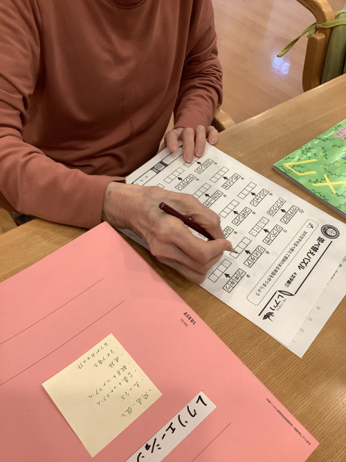 2025.08.24 【脳トレ】頭を悩ませます… 活動報告 #優っくりグループホーム杉並沓掛 #脳トレ #迷路 #慎重 2025.07.30 【脳トレ】2人で考え中 活動報告 #優っくりグループホーム杉並沓掛 #脳トレ #都道府県 2025.05.04 「これやりたい!」が嬉しいです♪ 活動報告 #優っくりグループホーム杉並沓掛 #脳トレ #自己決定 #選択 2025.04.18 コツコツと 活動報告 #優っくりグループホーム杉並沓掛 #脳トレ #点つなぎ 2025.04.16 いろいろ用意してみました 活動報告 #優っくりグループホーム杉並沓掛 #脳トレ #自己決定 #間違い探し