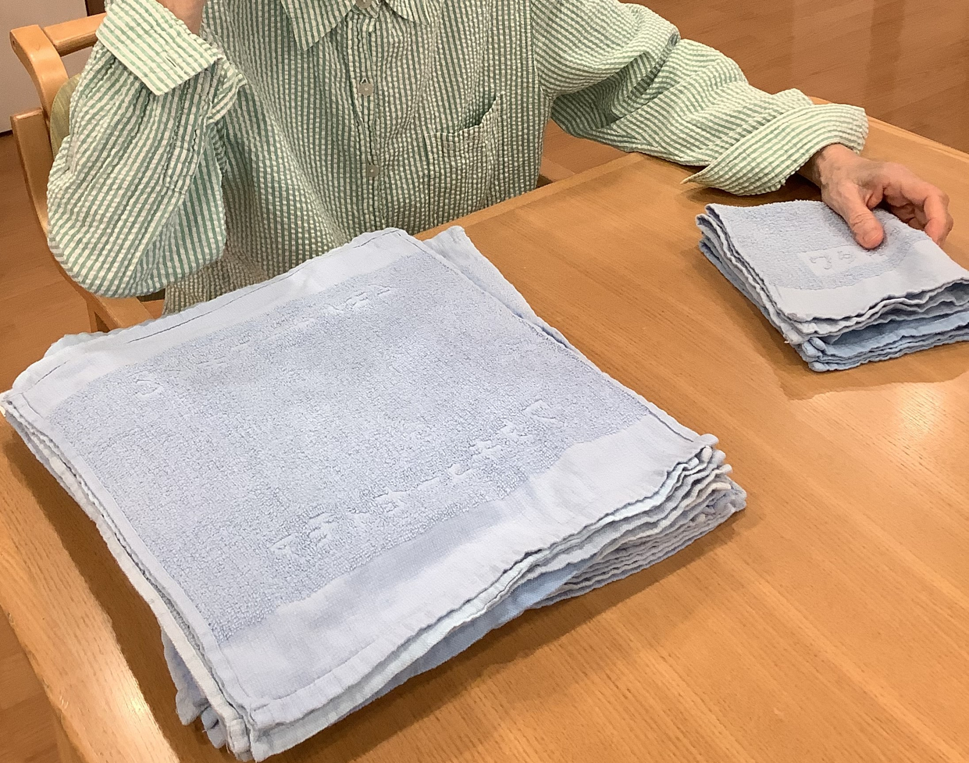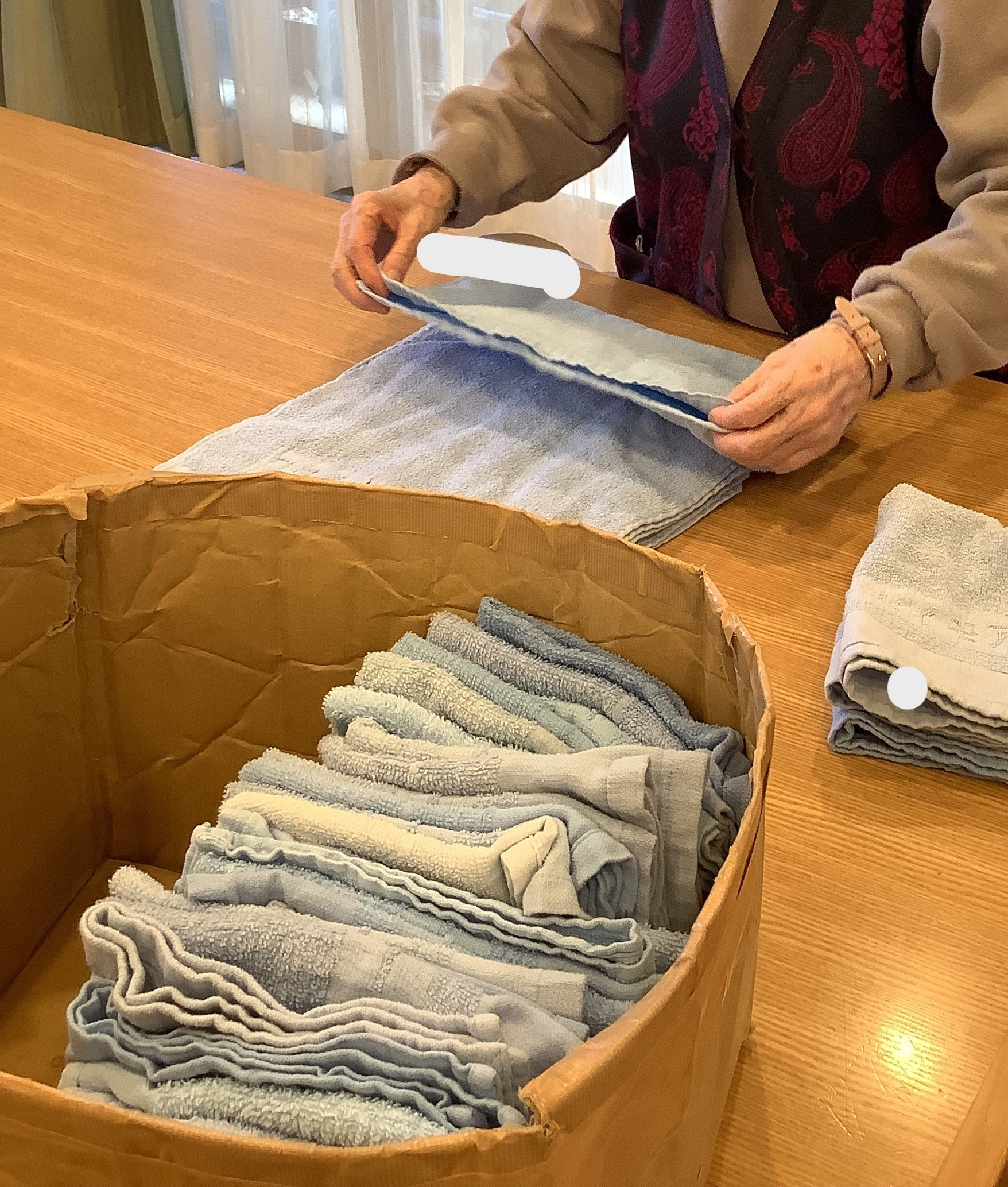 今回は利用者様がタオルを畳むのを手伝って下さった様子を共有させていただきます。
