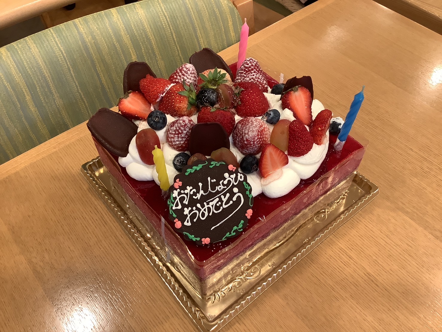 お弁当に舌鼓を打ったあとしばらく休んでからお誕生日のケーキが登場!