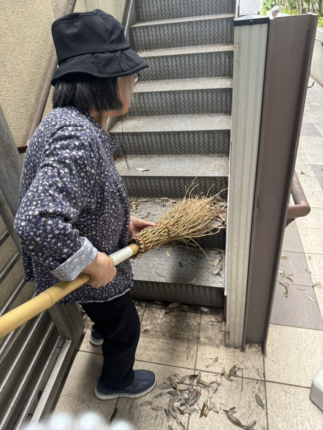 非常階段は基本的に使っていませんが、何かあった時に落ち葉だらけだと避難が大変なので、ここも綺麗にします♪