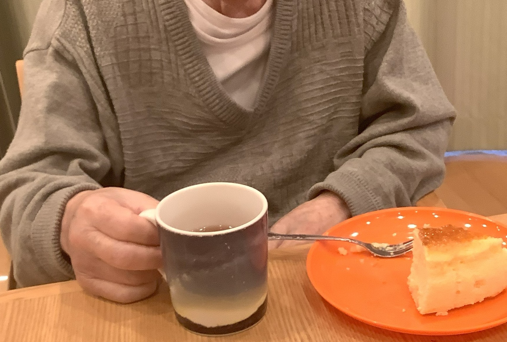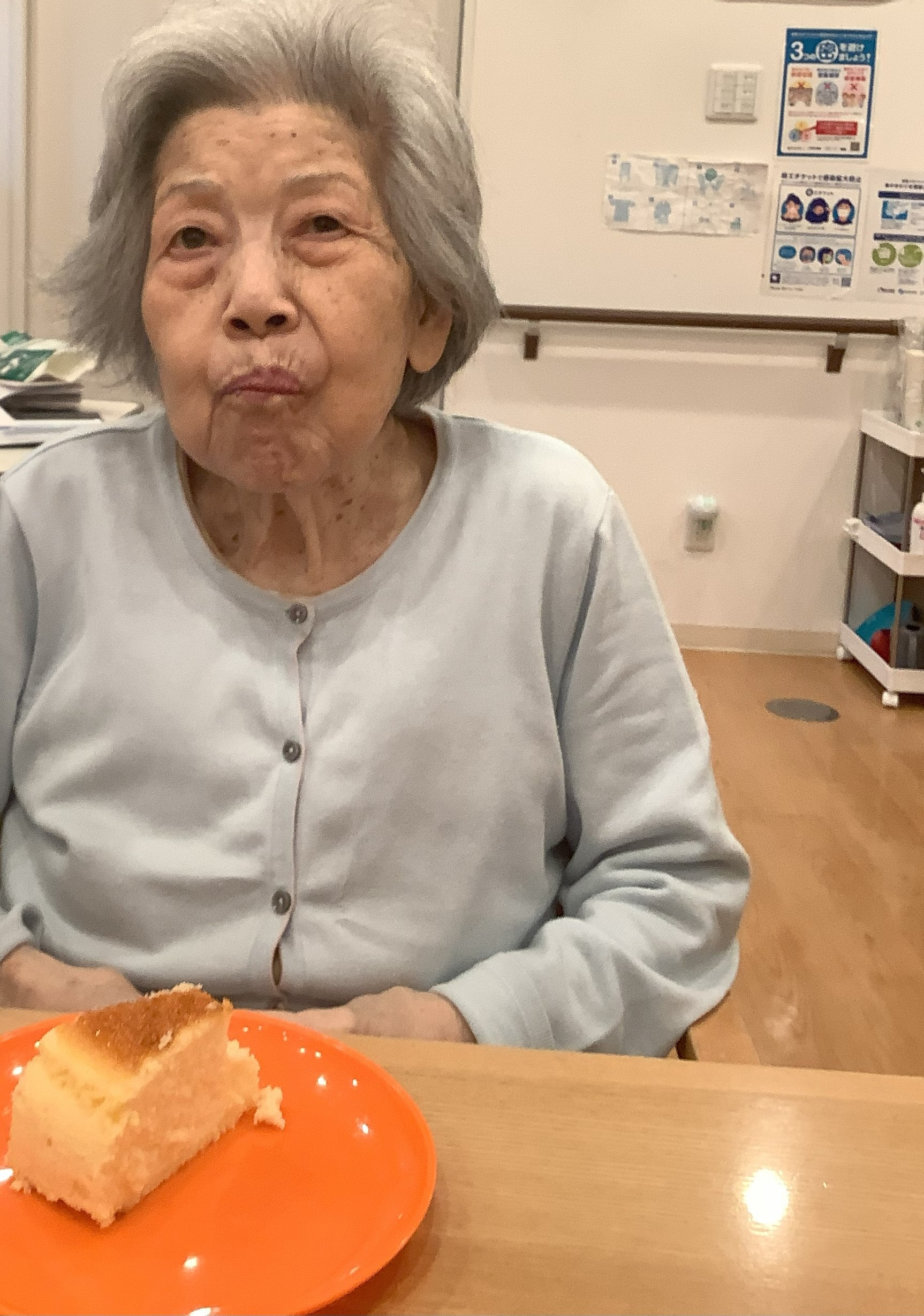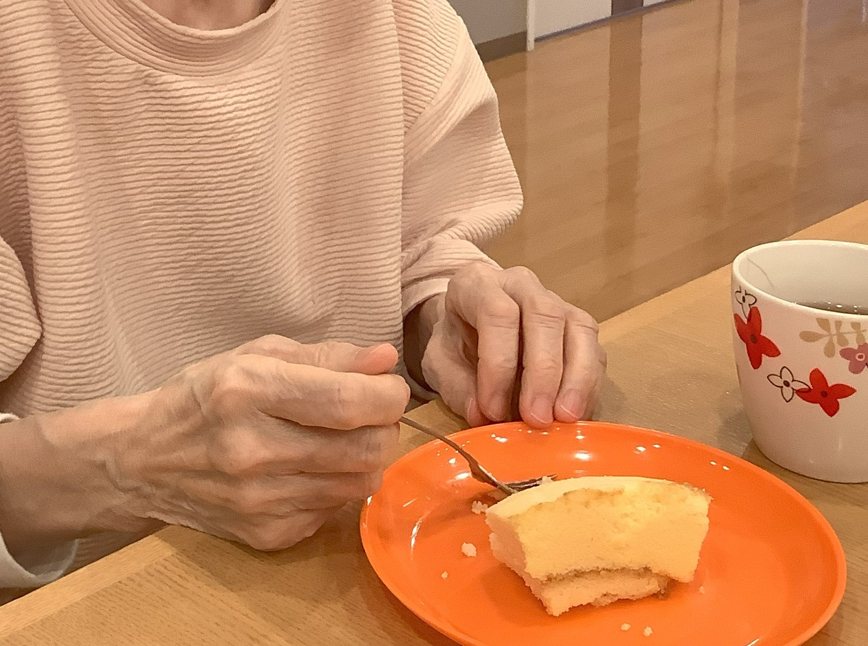 次に、利用者様がケーキを召し上がっていらっしゃる様子です。