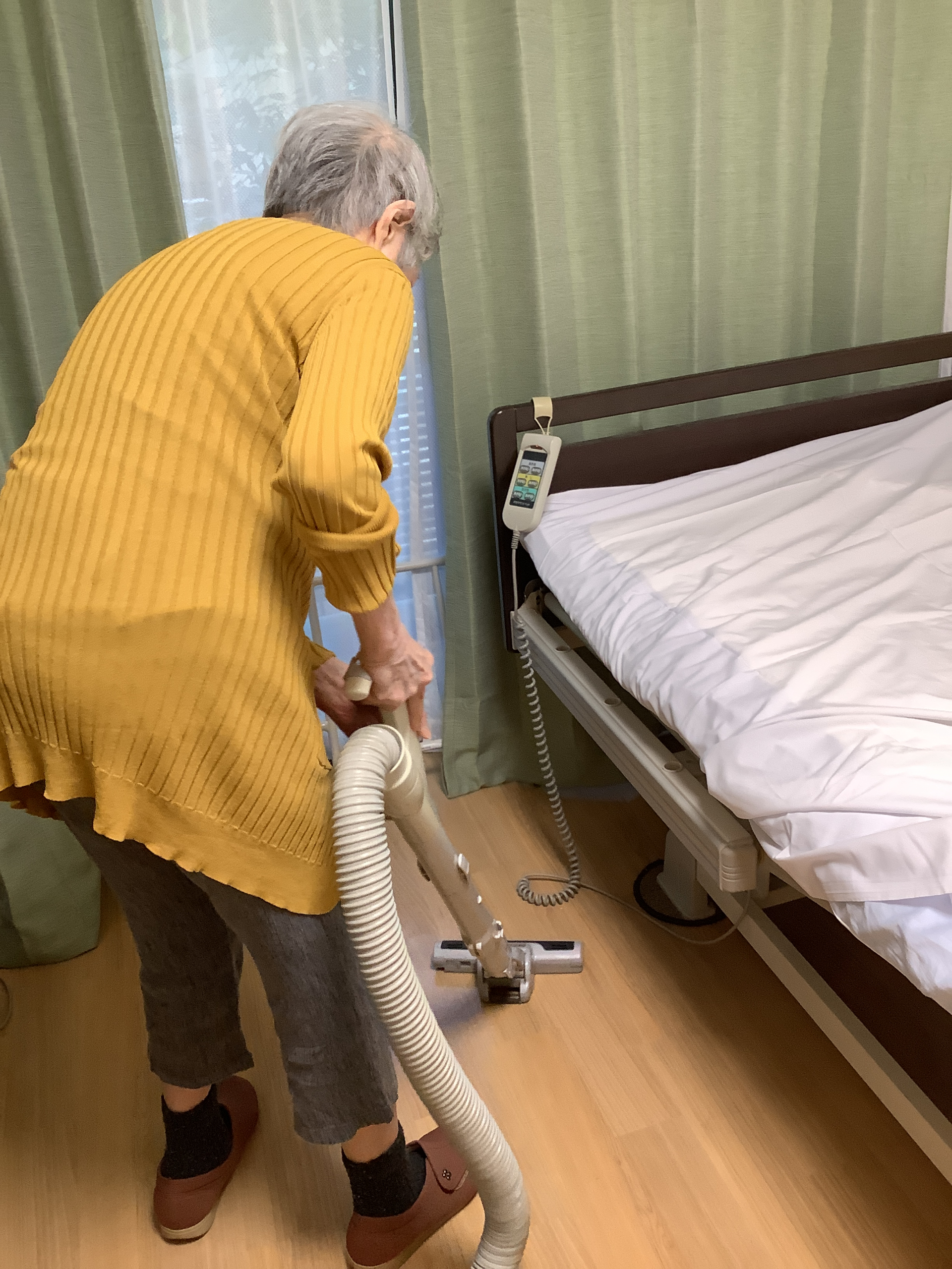 ご入居者様と協力しながら、お部屋のお掃除です♪