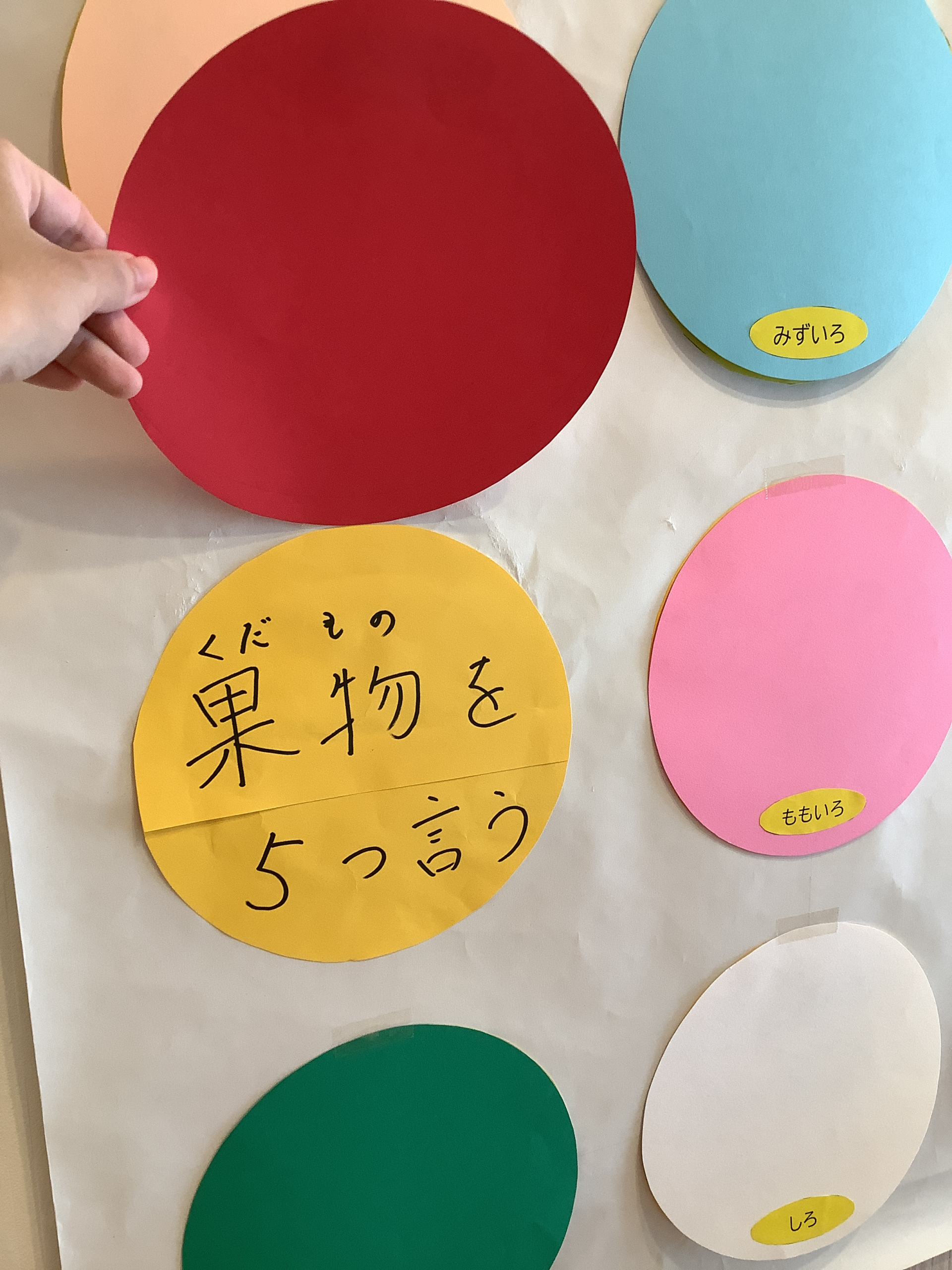 好きな色をぺらっとめくっていただくと、「果物を5つ言う」とか「左右の腕を5回ずつ上げる」とかそれぞれ書かれています。