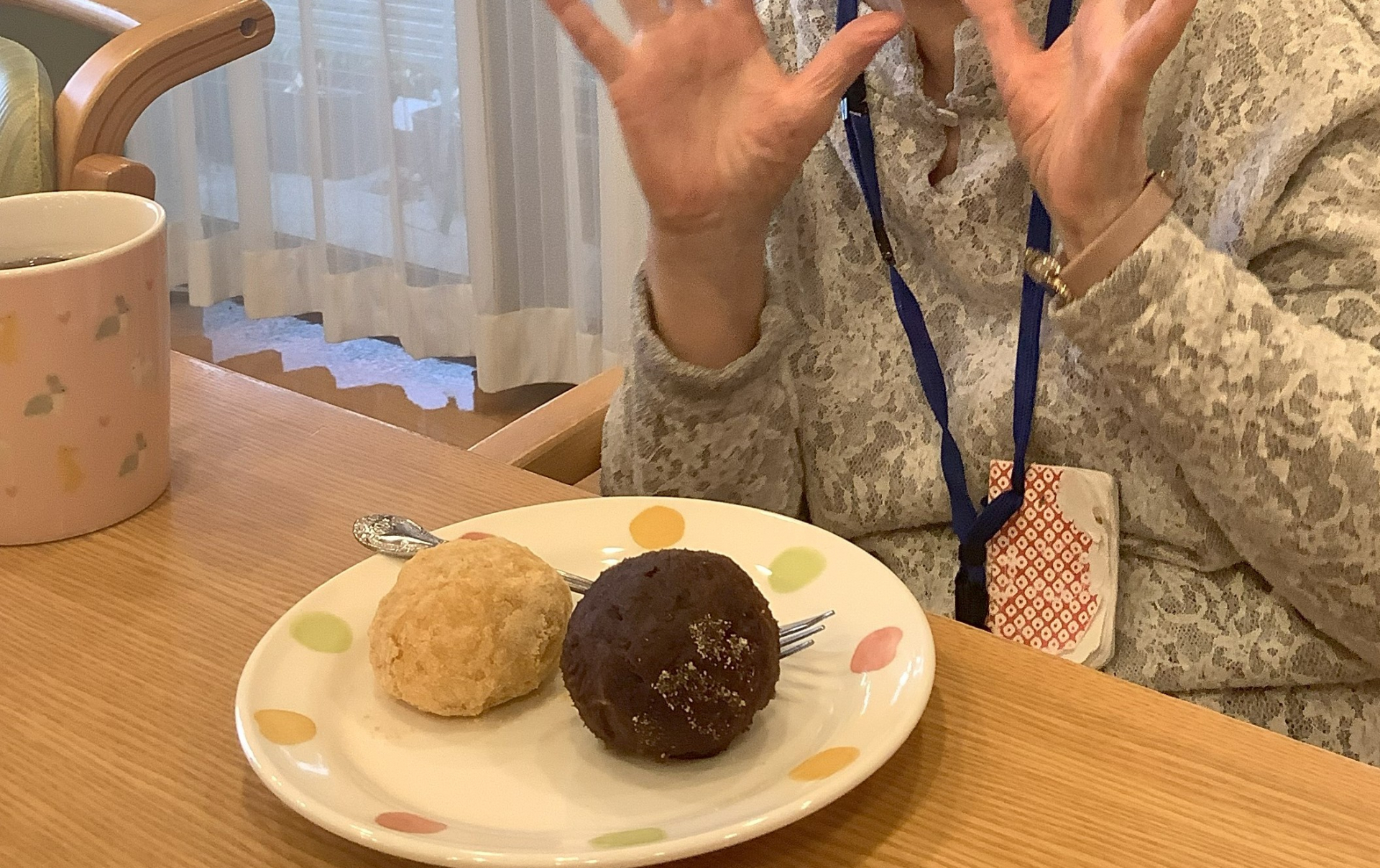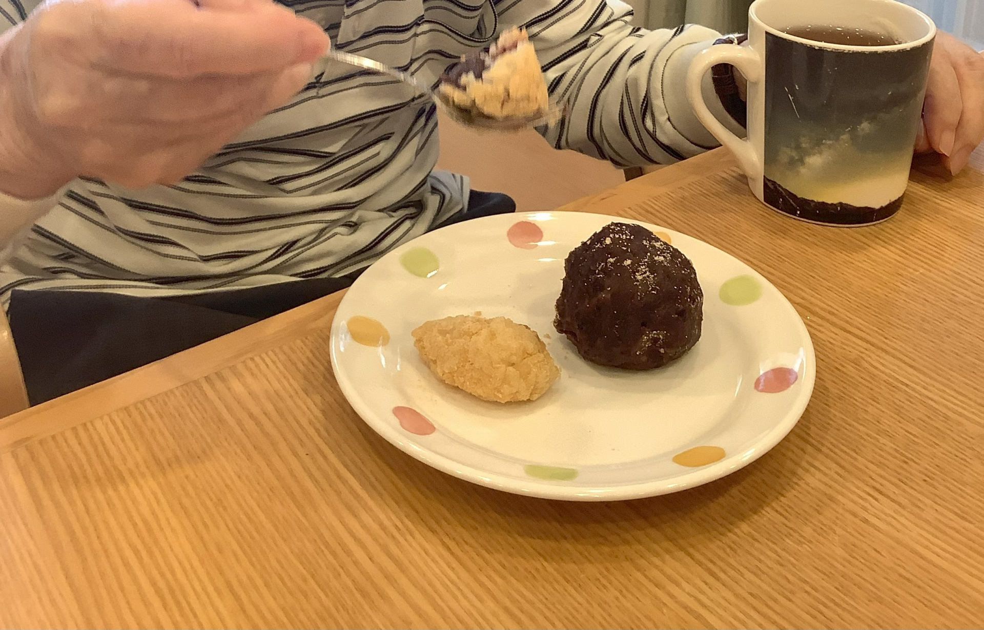 今回は先月、おやつの時間に提供したおはぎを召し上がっている様子を共有させていただきます。