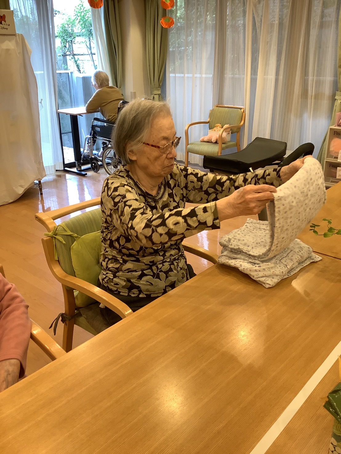 日頃ご入居者様方には、洗濯物畳みや食器のお片付けなど、各々できることをお願いしています♪