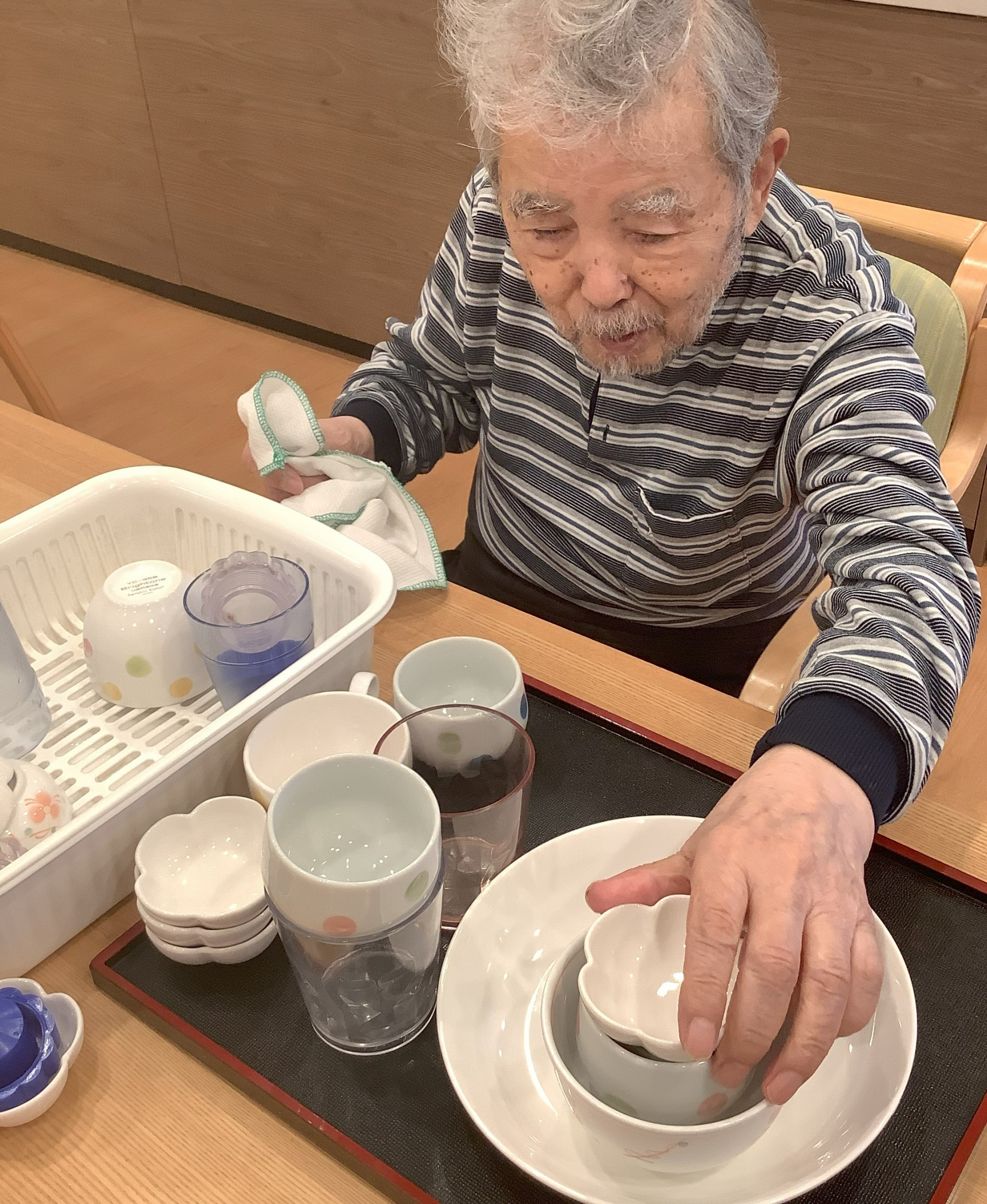 今回は利用者様が洗い物の水拭きをして下さっている様子を共有させていただきます。