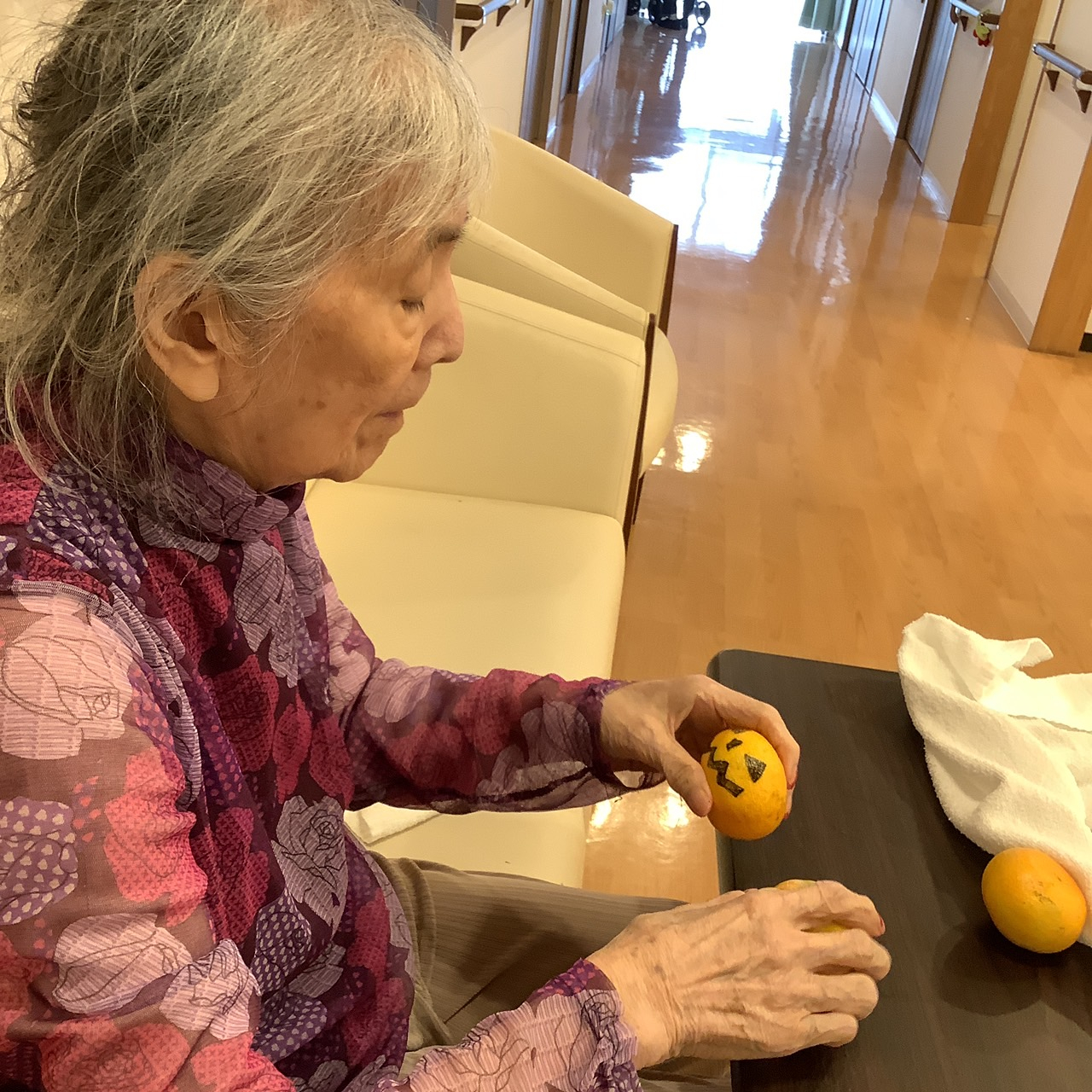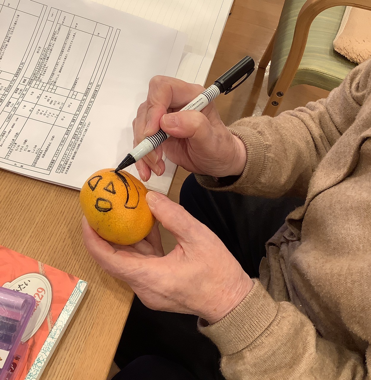 何をしているのかと言いますと、ハロウィンの時期ということもあって、みかんにハロウィン系のイラストを描いていました!