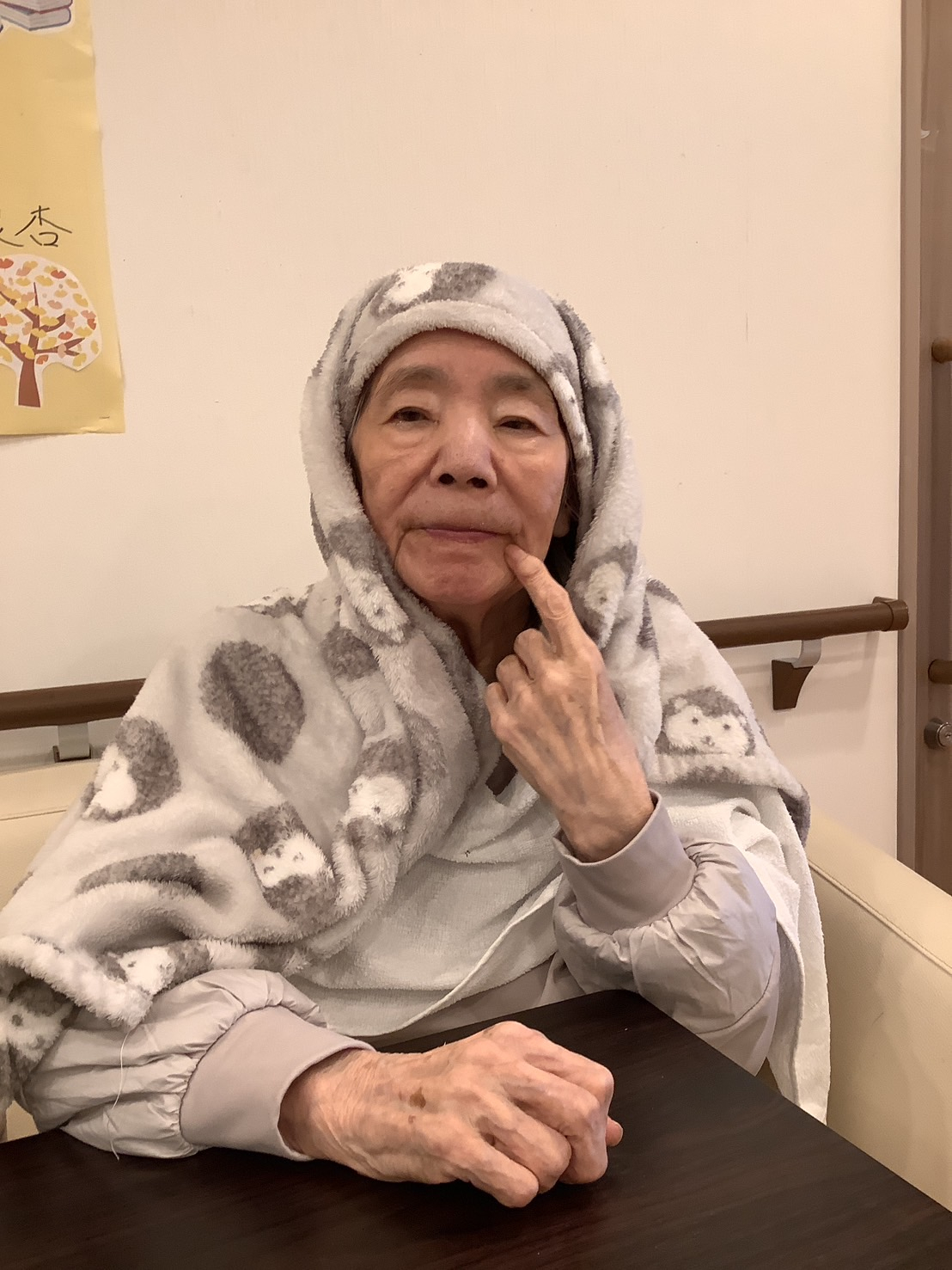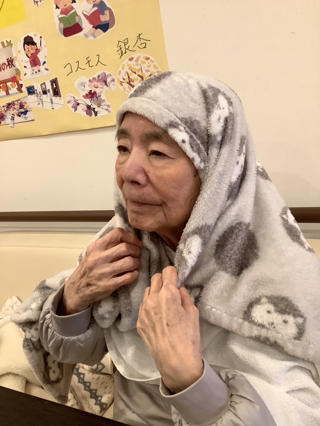 よくこうやってブランケットに身を包んでおられる姿をお見かけします(*´▽`*)