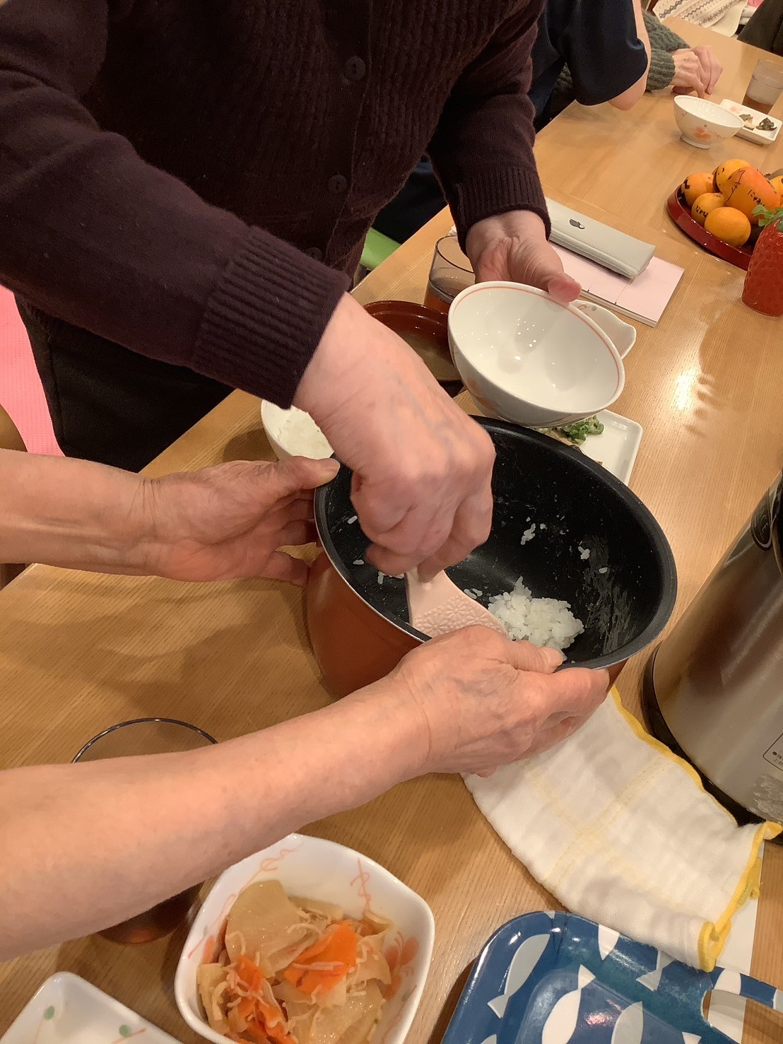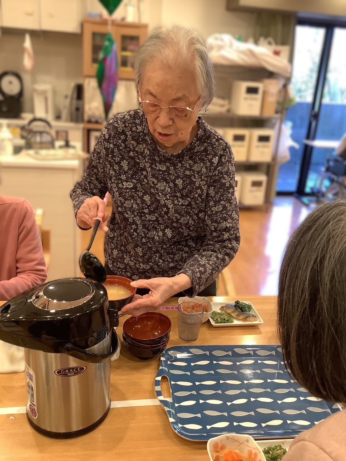 汁物と白米は、食席でご入居者様によそっていただきました(*'▽')