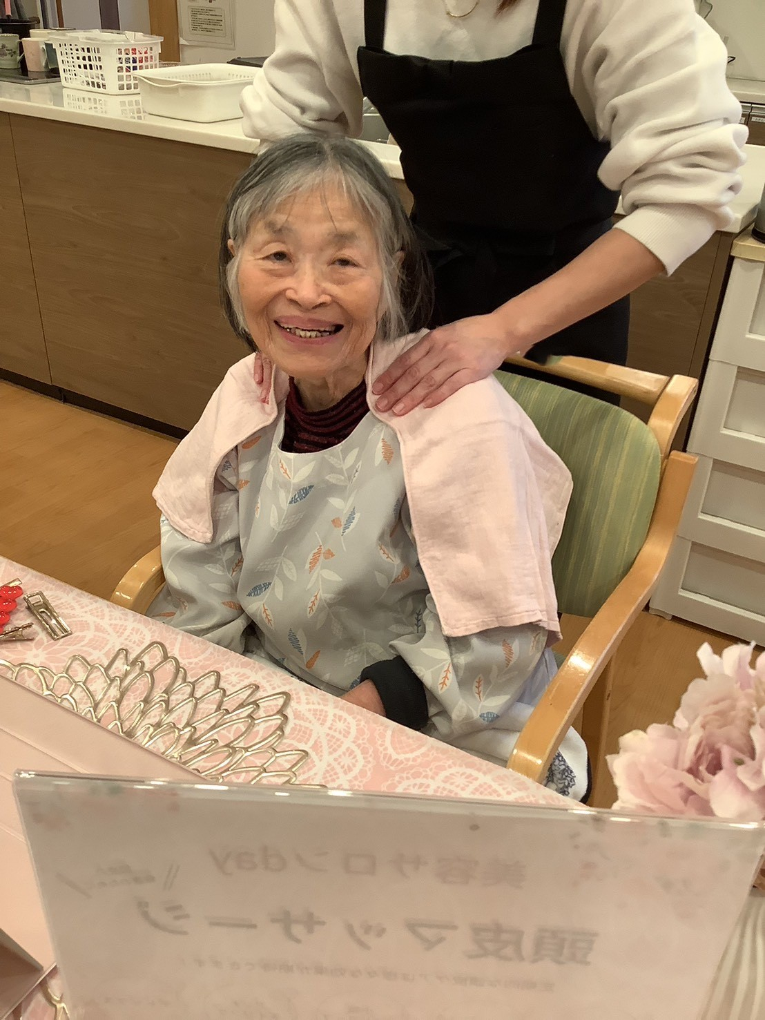 外に出ないとなかなか受ける機会がないマッサージですが、沓掛ではこうして施設の外から美容レクのスタッフさんが来てくださるので、中にいてもさまざまな体験をしていただくことが可能です!!