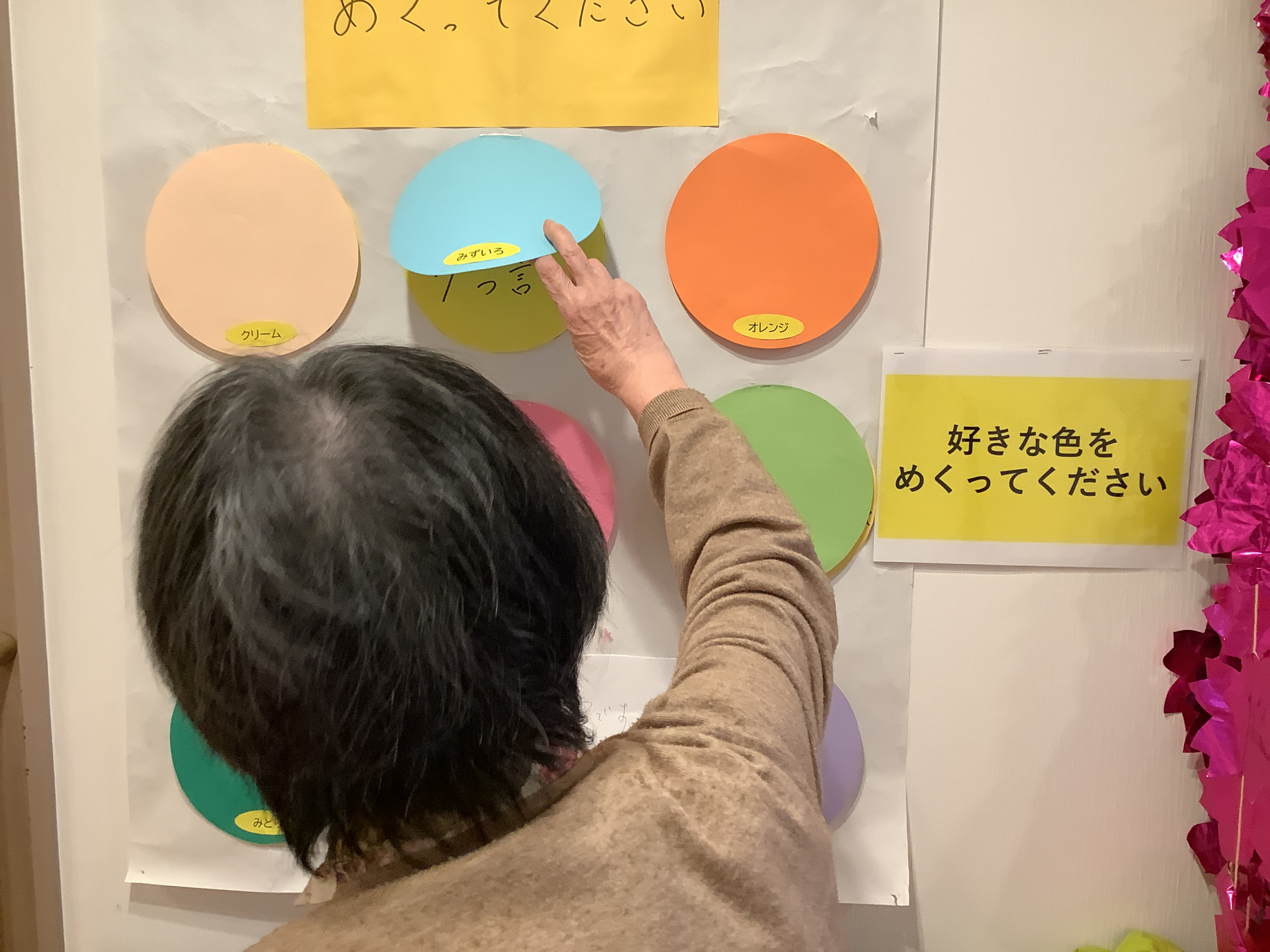 途中で廊下に貼られている手作りのアクティビティを一緒にやりました!