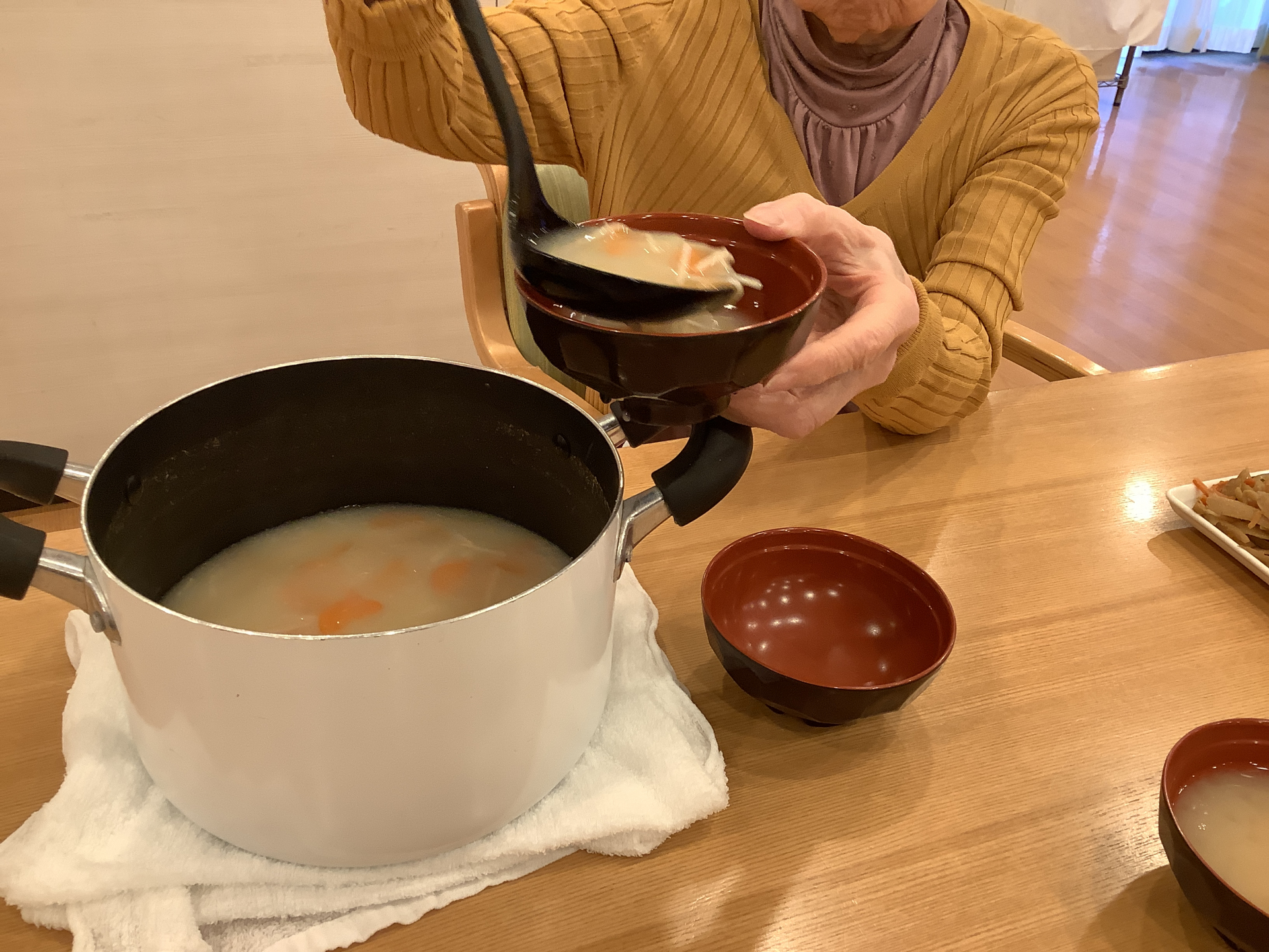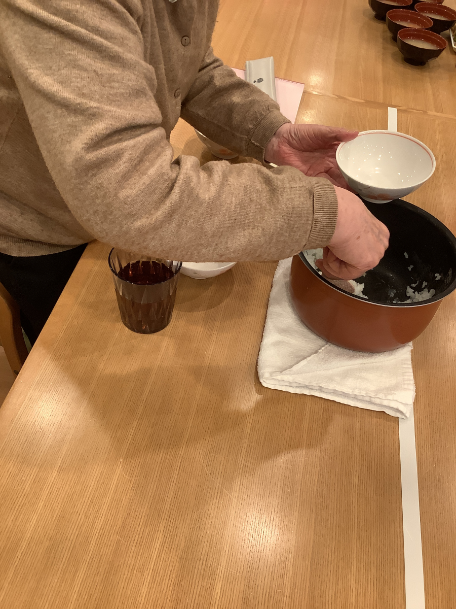 食席にて、白米とお味噌汁の盛り付けをそれぞれお願いしました♪