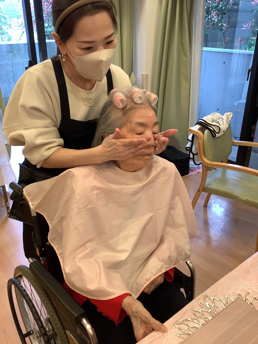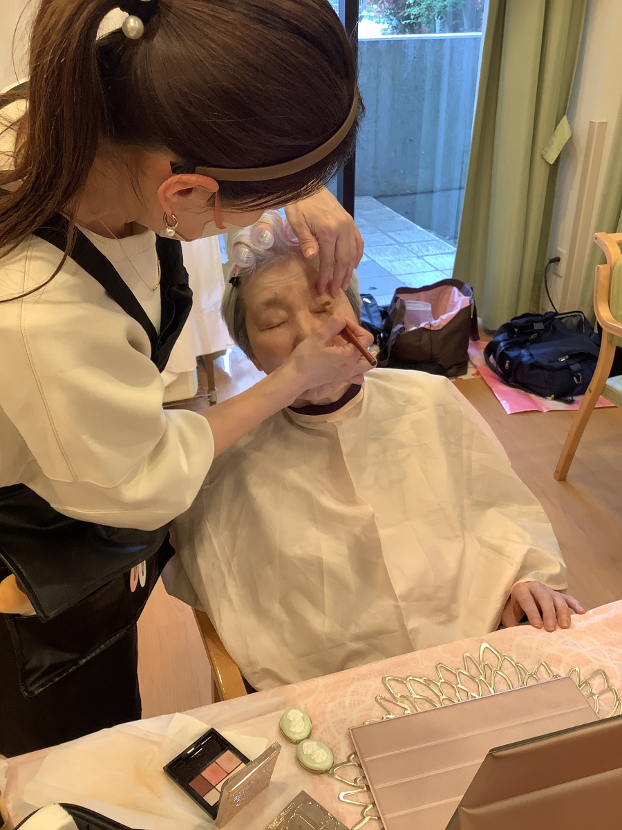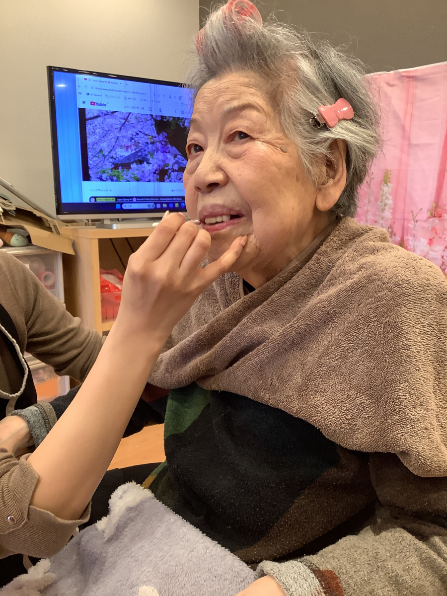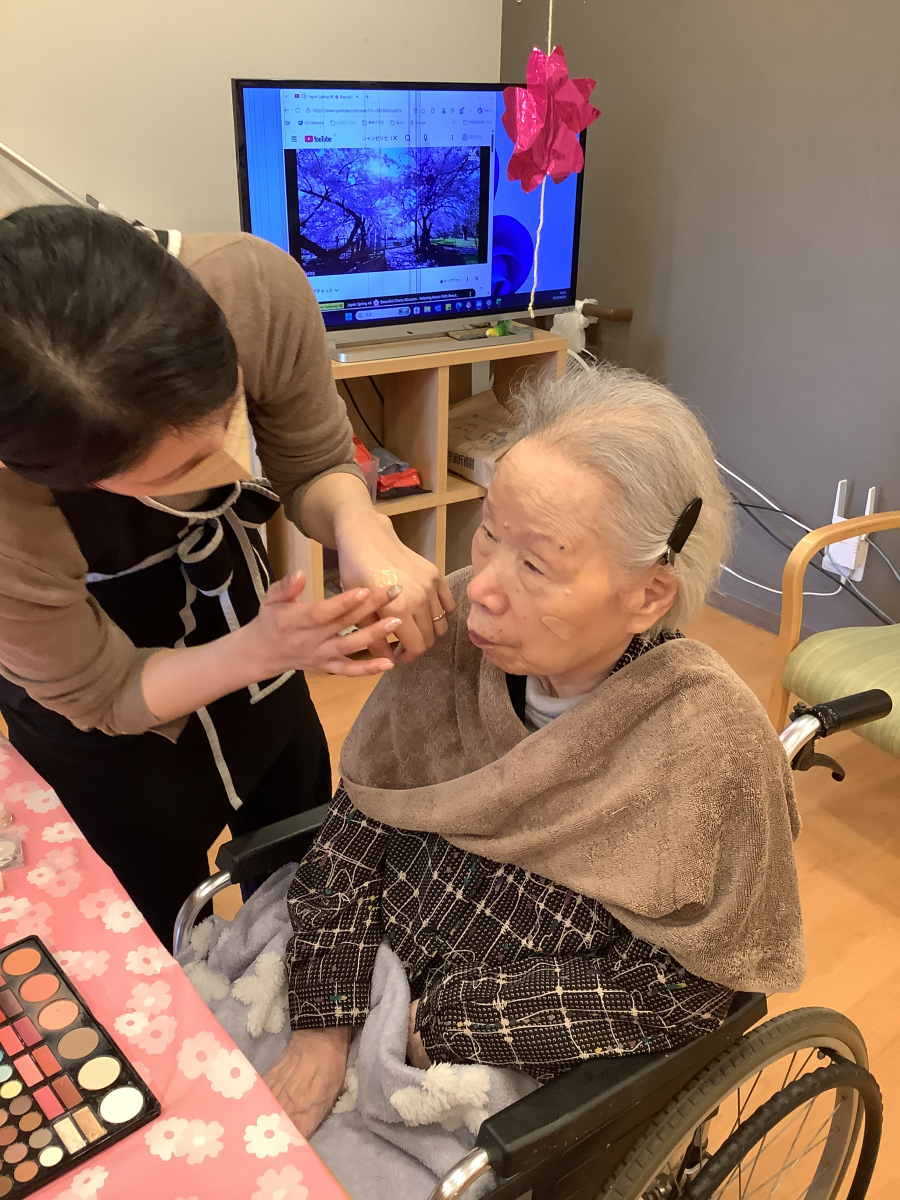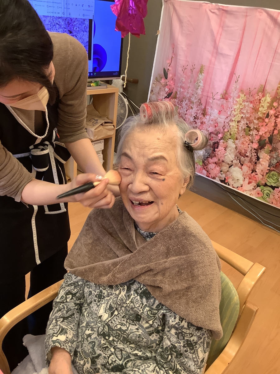 普段はお化粧をする機会がなかなかないご入居者様方ですが、女子の夢盛りだくさんのようなメイク道具をご覧になって、とても喜んでおられました!!