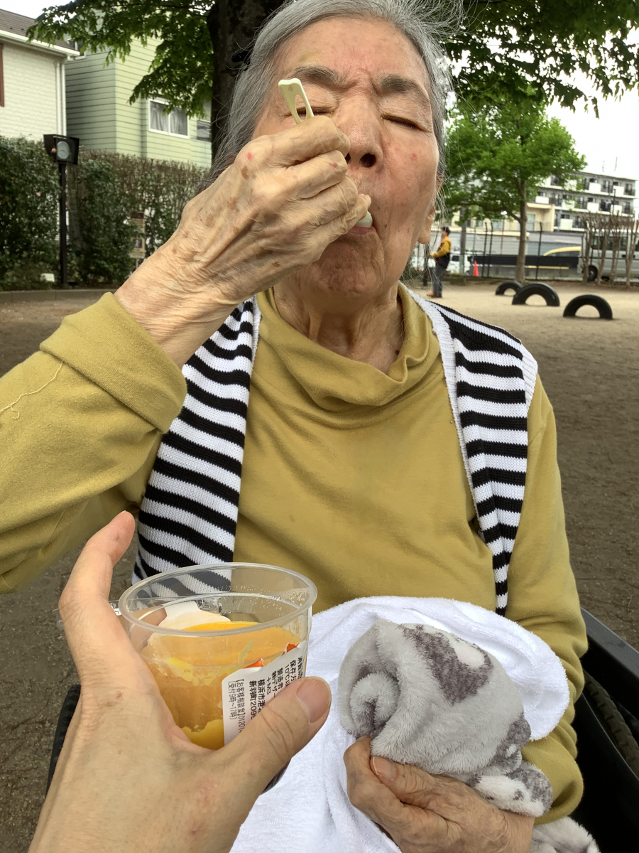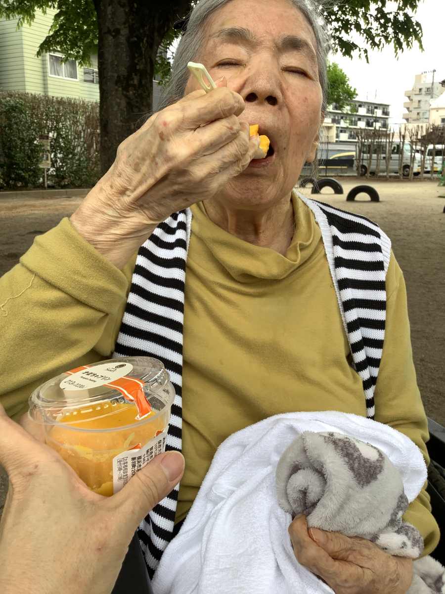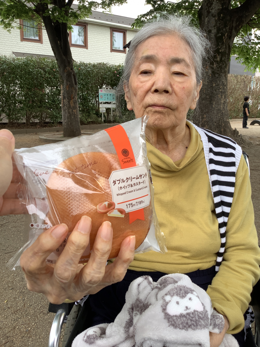 U様は職員と一緒に近くのコンビニでスイーツを買ってから、公園でのんびり召し上がってきたようです(*^-^*)