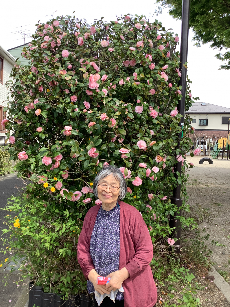 そのときに、「もしお花の名前がわかるご家族様などおられましたら、ぜひ教えていただきたいです!」と書いたのですが、本日面会に来てくださったご家族様が、「オトメツバキとハナカイドウだと思います」と教えてくださったんです~!!