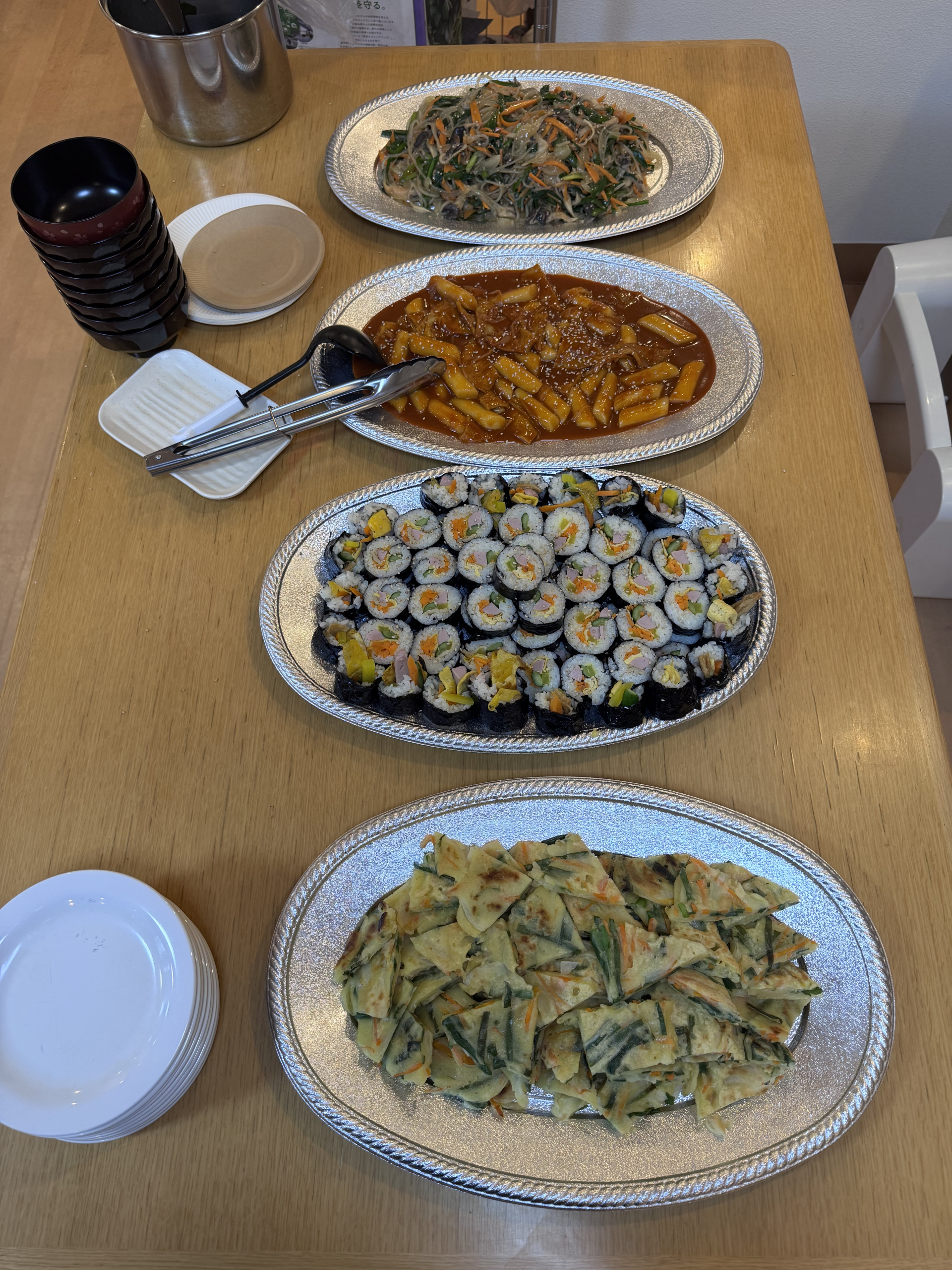 韓国料理の4つである 「キンバ」「チジミ」「チャプチェ」「トッポキ」を手作りしてみました。