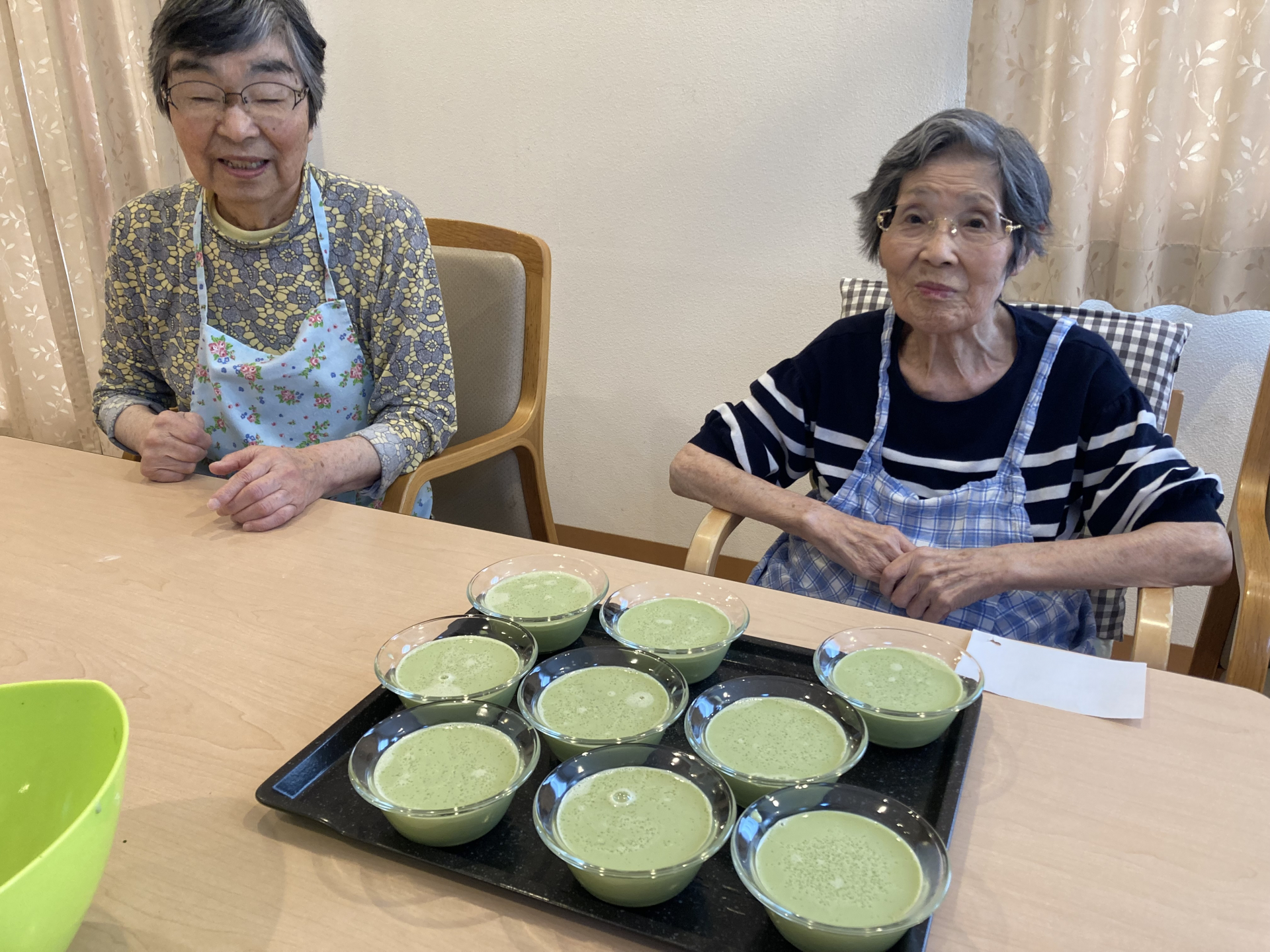 今日は、秋の気配を感じる午後に、みんなで抹茶プリン作りに挑戦しました。
