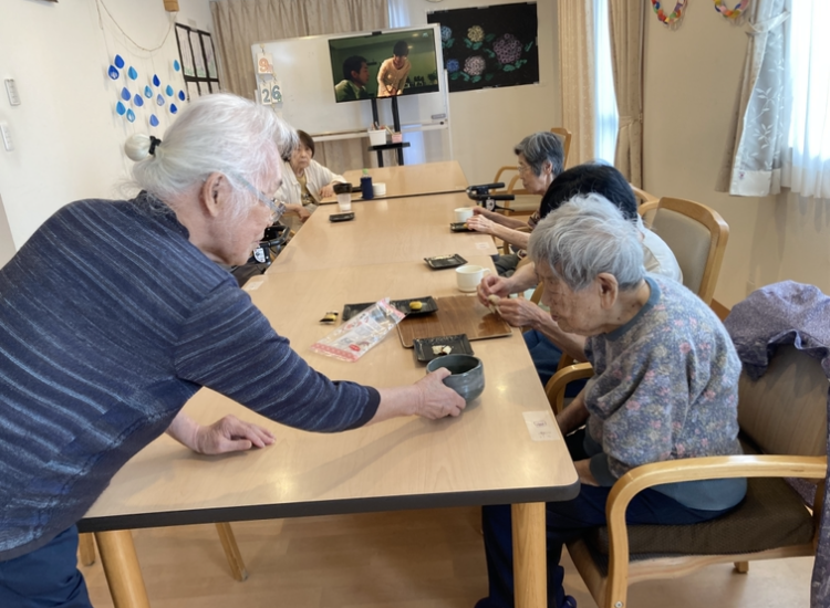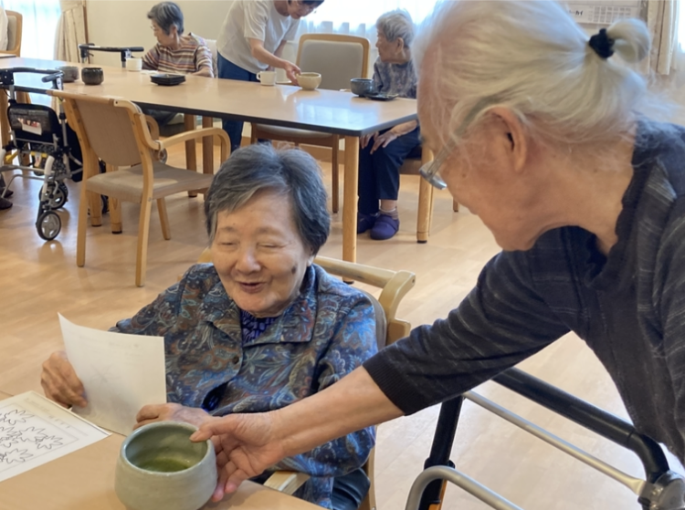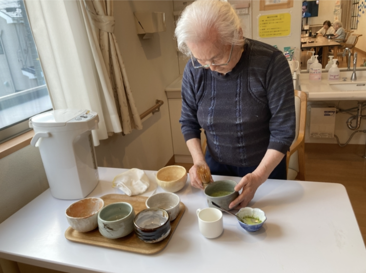 お茶の先生をさせてました利用者さまがお茶を点てていただき、皆さまに一服 ^^/