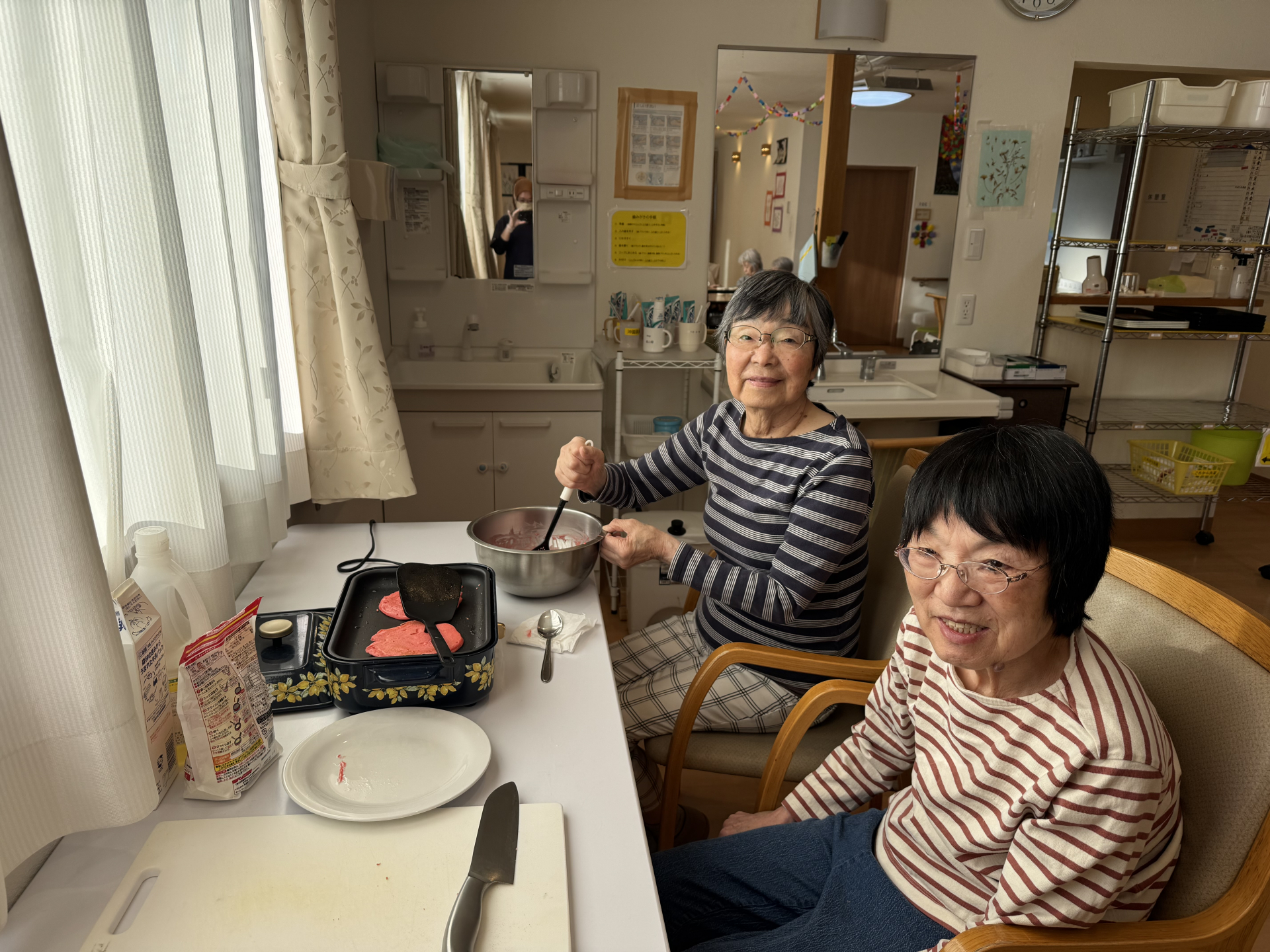 本日のレクリエーションは、皆さんと一緒に“ホットケーキ作り”を行いました。