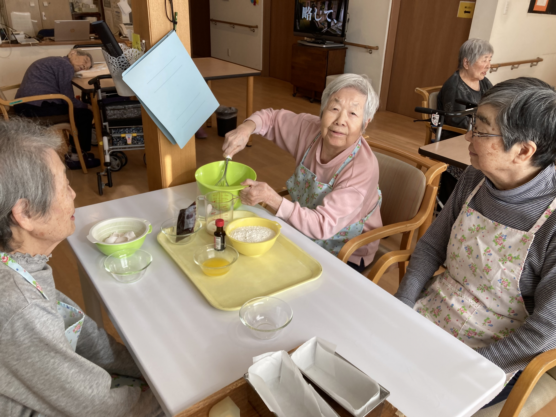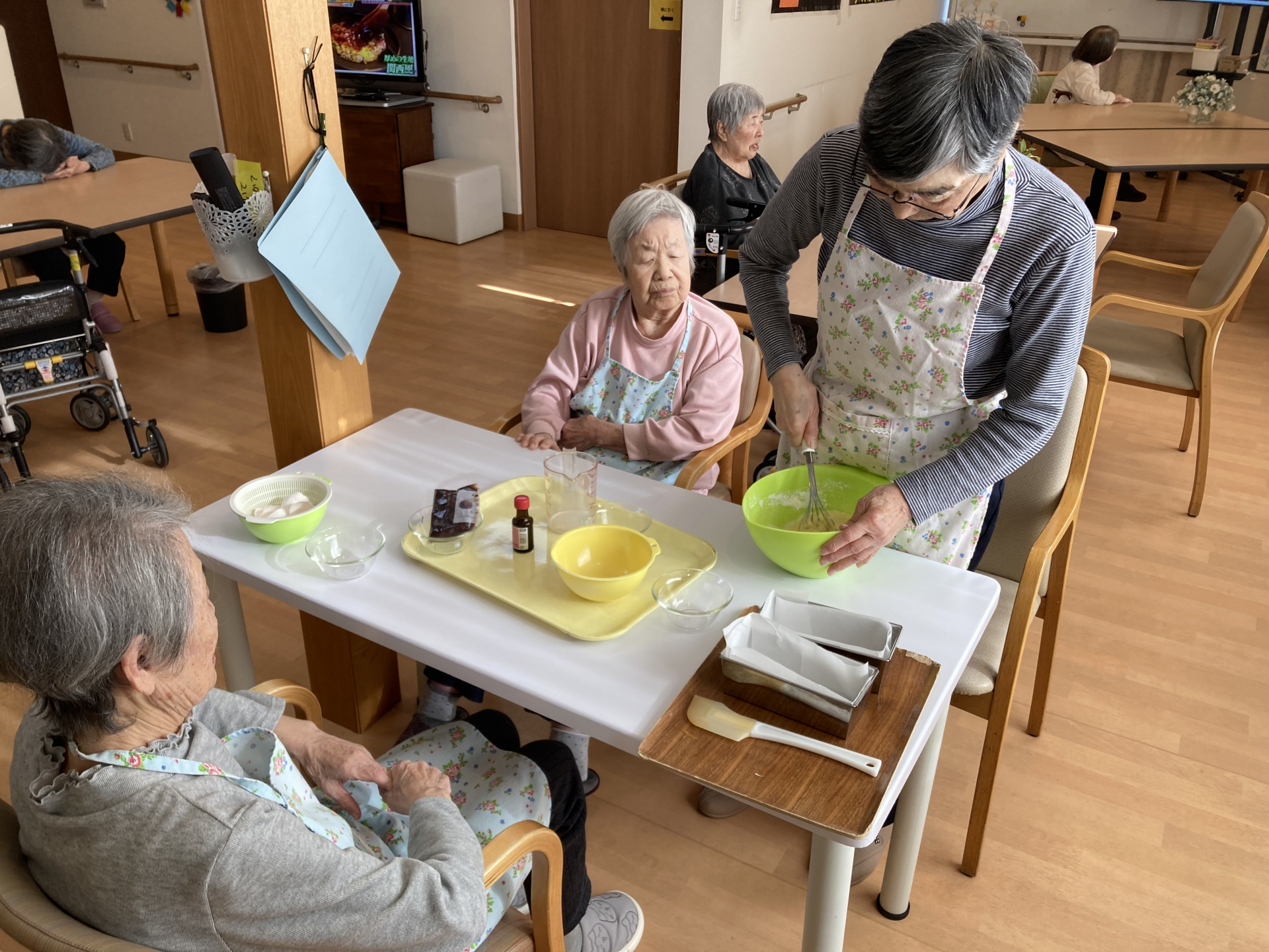 生地を混ぜたり、型に流したりと、できるところを一緒に作業しながら、和やかな時間を過ごしました。