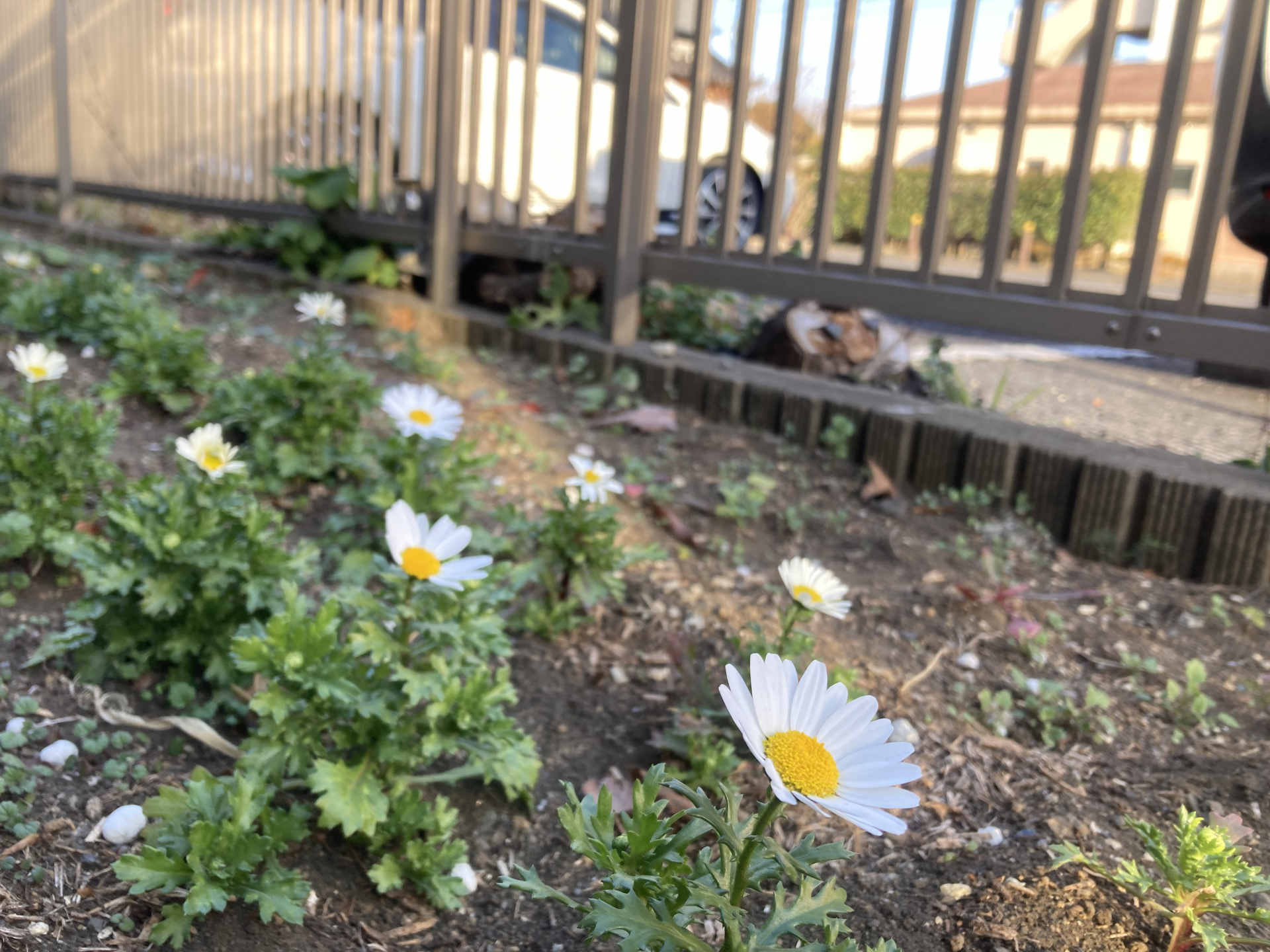咲き始めた花は、ノースポールの真っ白な花びらと、水仙の鮮やかな白色。