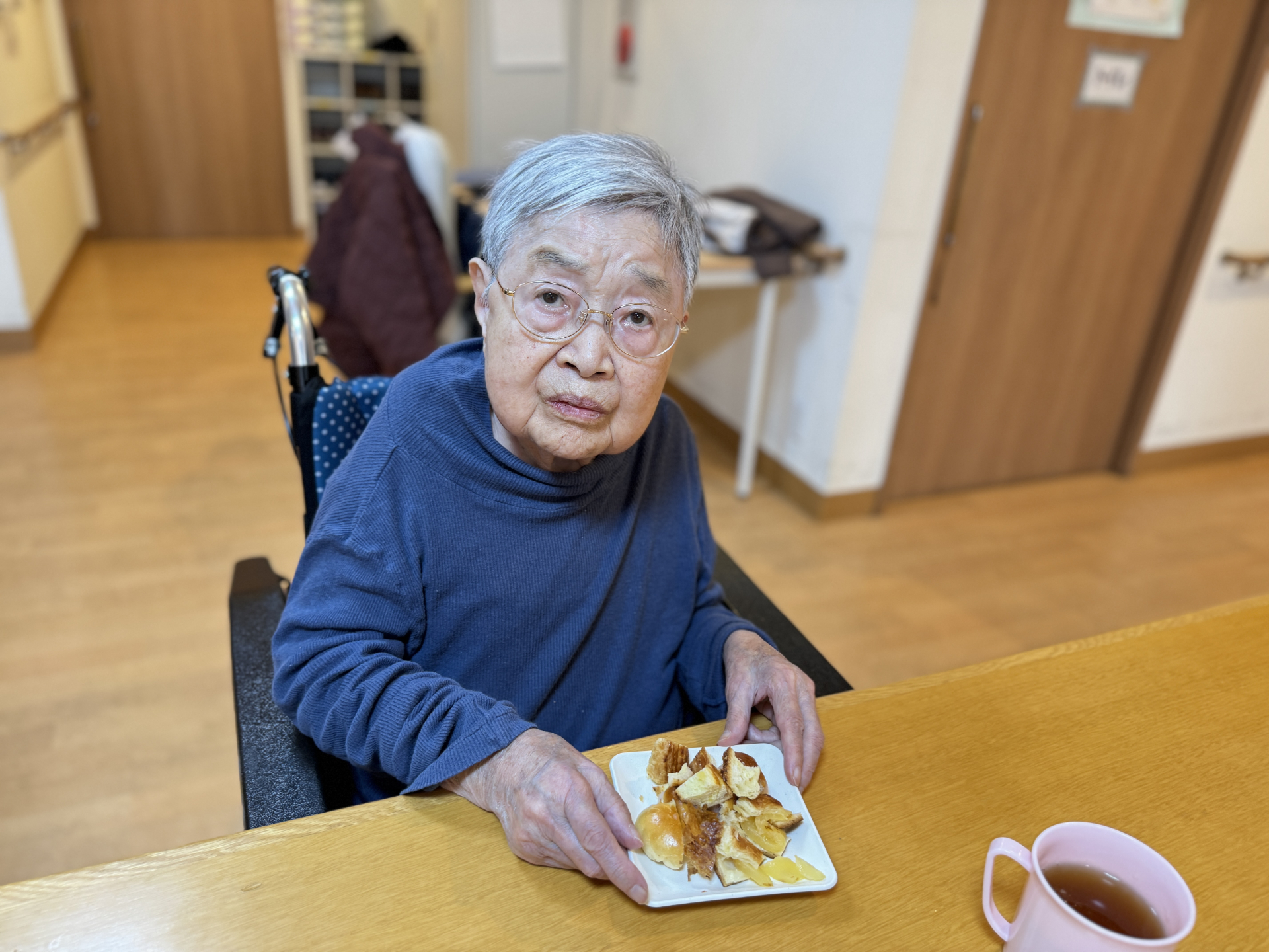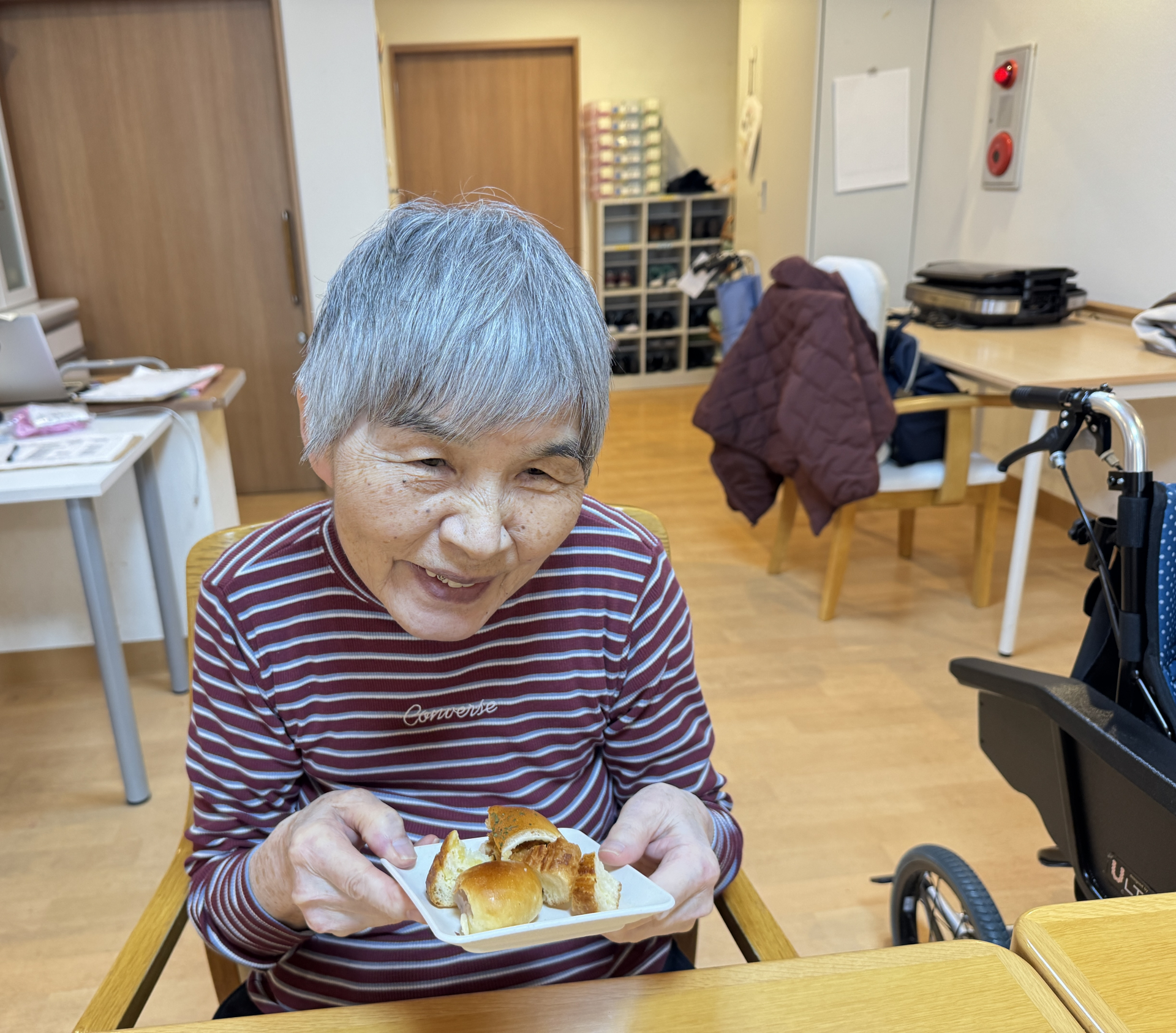 3時のおやつでパンを召し上がって頂きました。