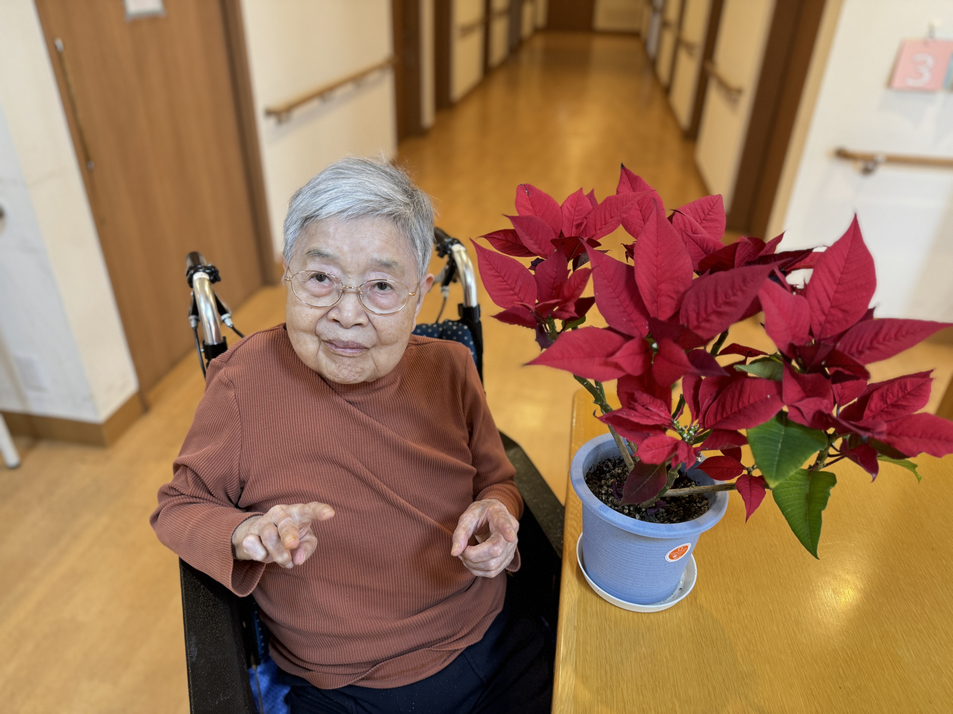 施設の庭では、色とりどりのお花たちが元気に咲き誇っています。