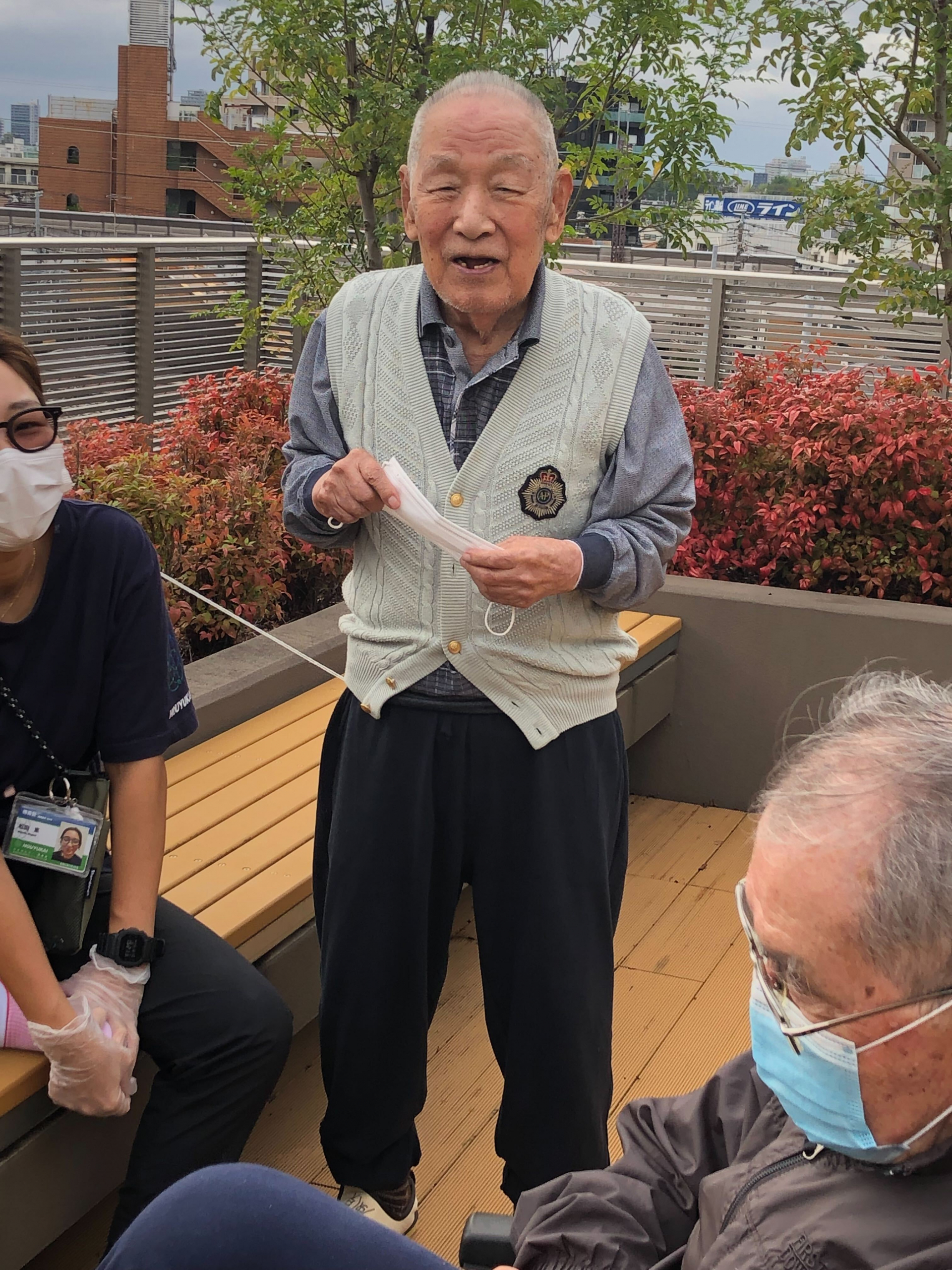 感謝のお気持ちで自分が車いすを押したいと仰られ