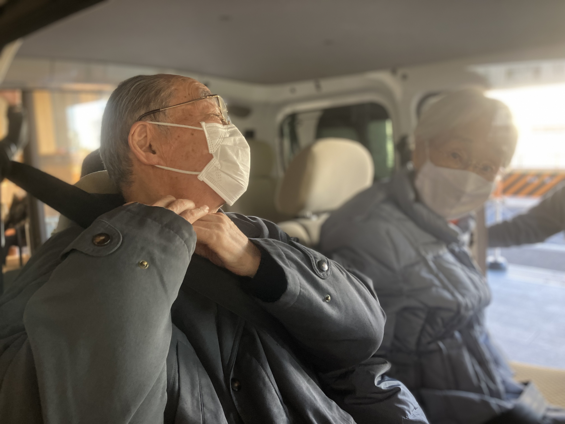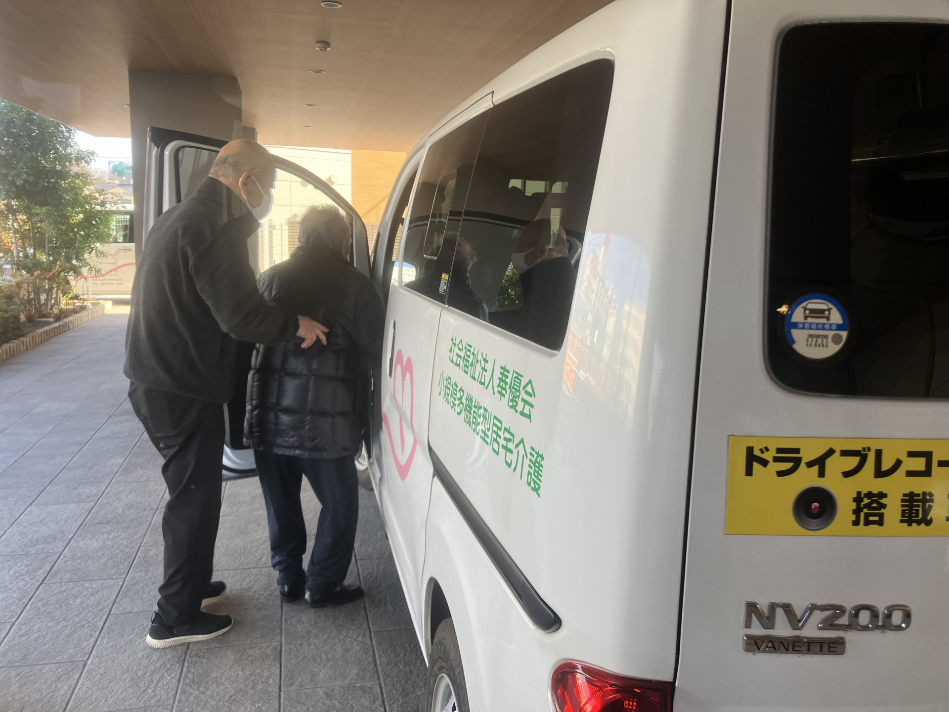 ご利用者様を車にお連れしております(^_-)-☆
