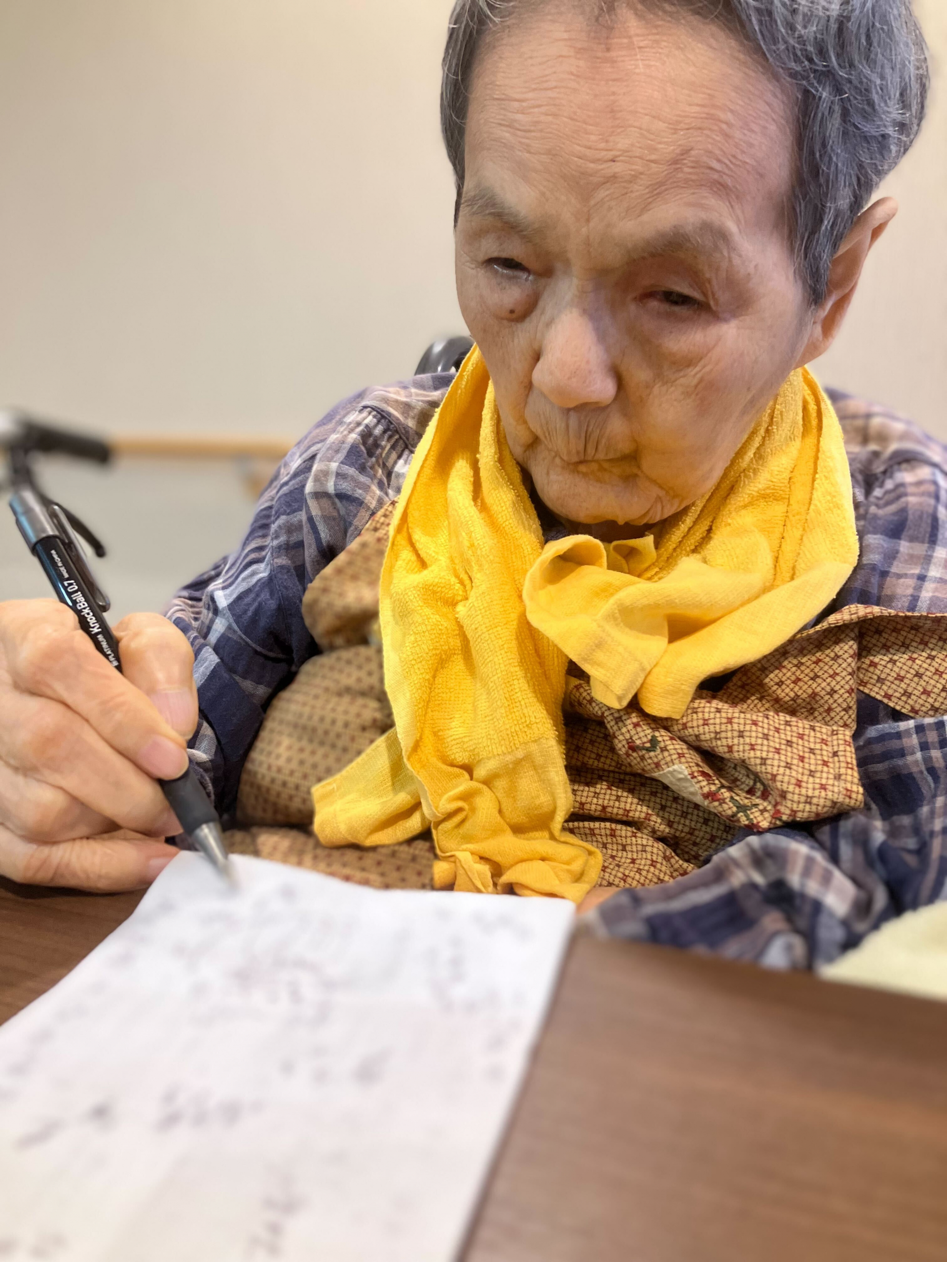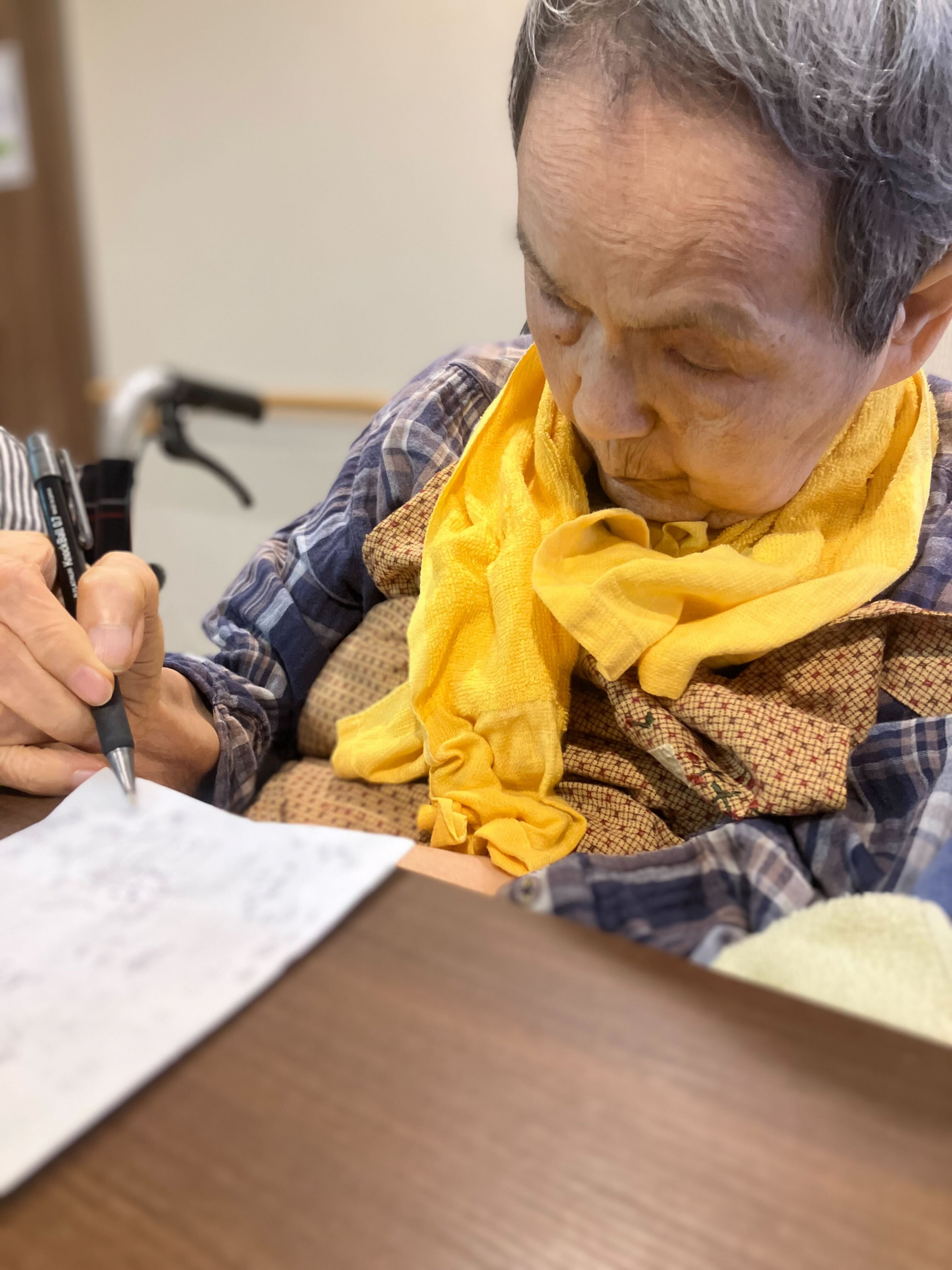 小規模多機能介護目黒中央の過ごし方 真剣なお顔で書き物
